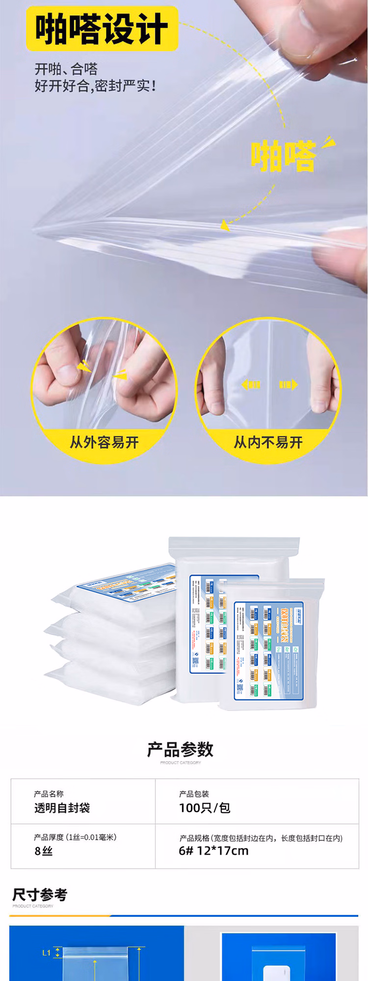 安居先森 6* 12*17cm 100只/包 自封袋塑料密封袋 100.00 个/包 (计价单位:包) 透明