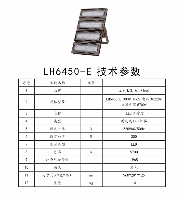 立华王(LihuaKing) LH6450-E 300W IP65 电压AC220V 光源色温5700K LED工作灯 (计价单位:个) 灰色