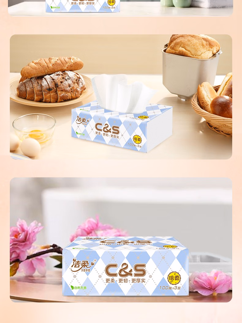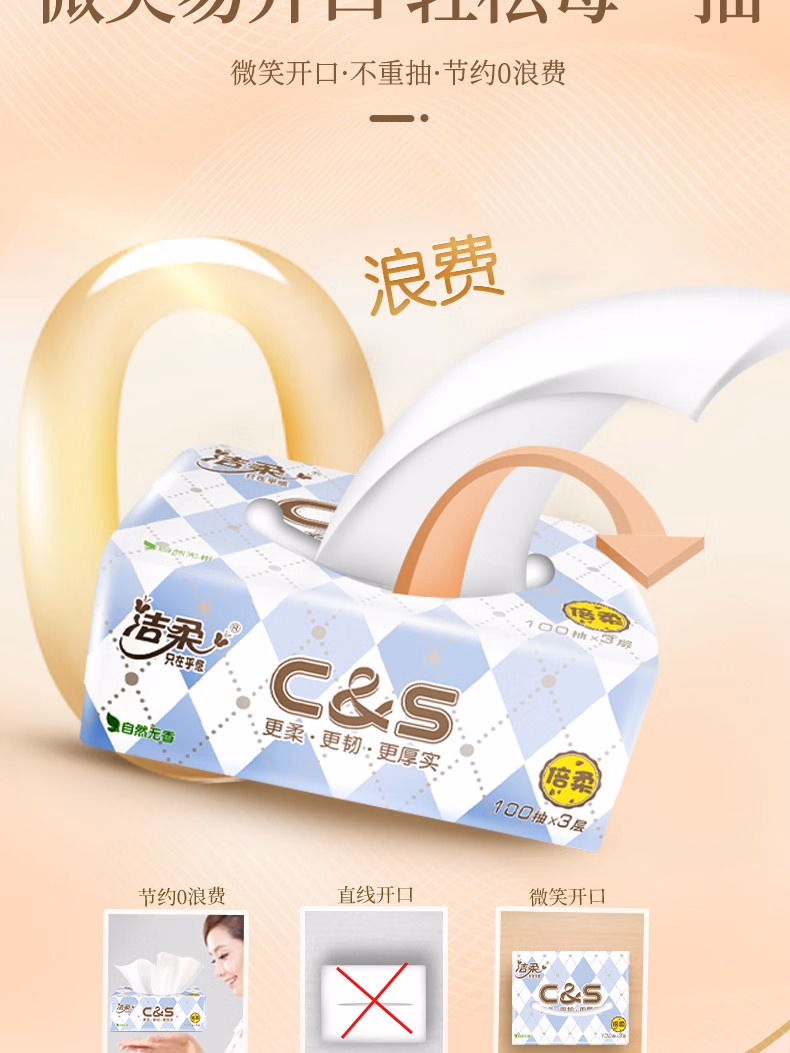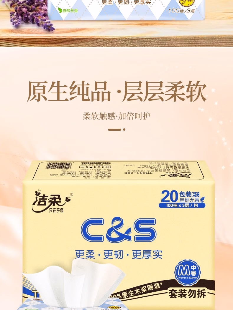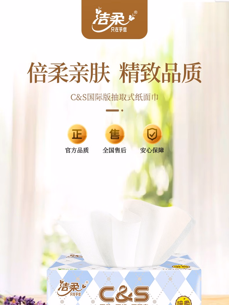 洁柔洁柔牌纸面巾 (订制软抽) 100抽3层(20包装)/箱 单位:箱