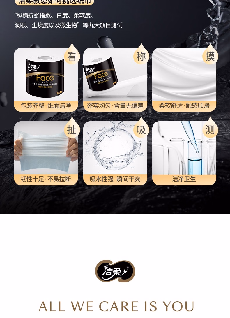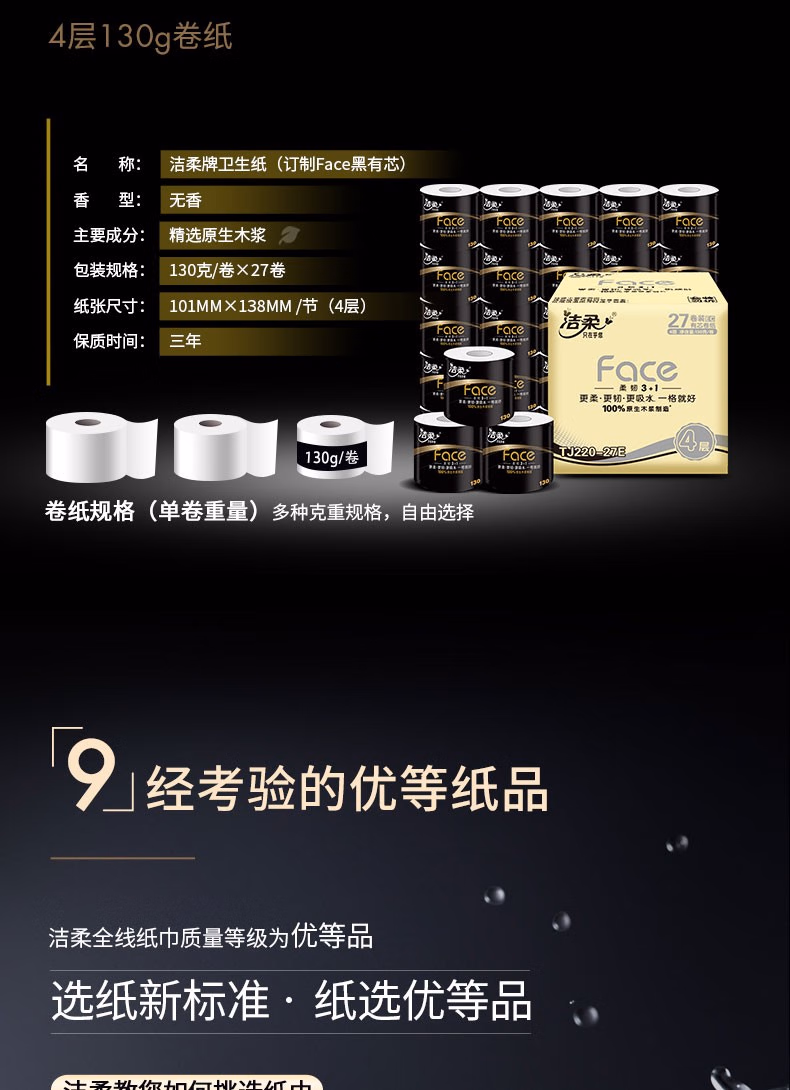 • 规格尺寸:101mm*138mm/节(4层) 130g/卷*27卷/箱