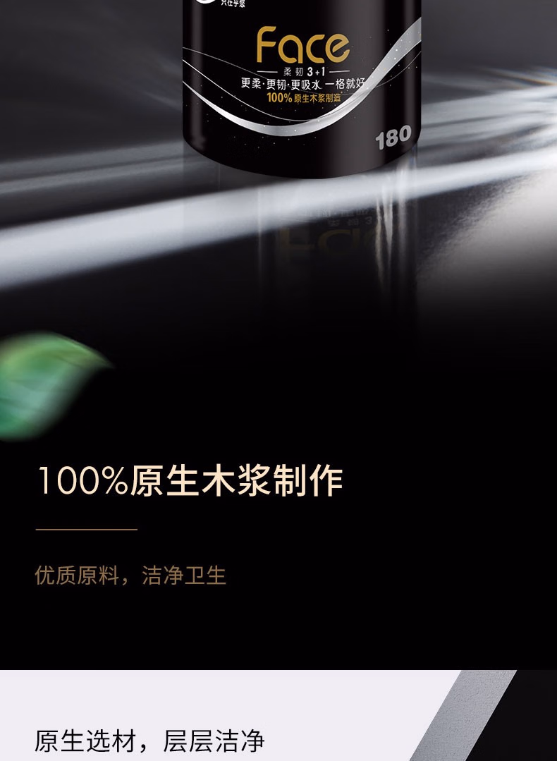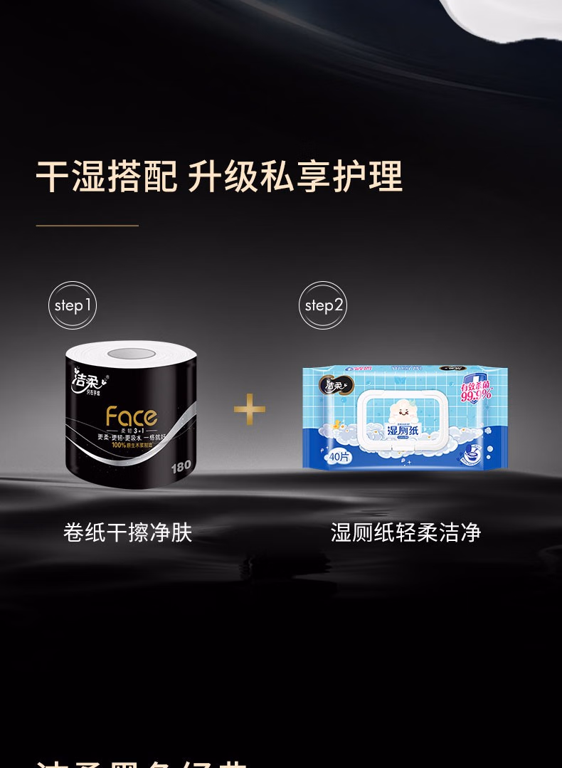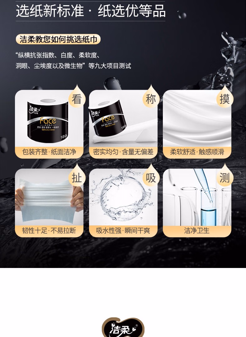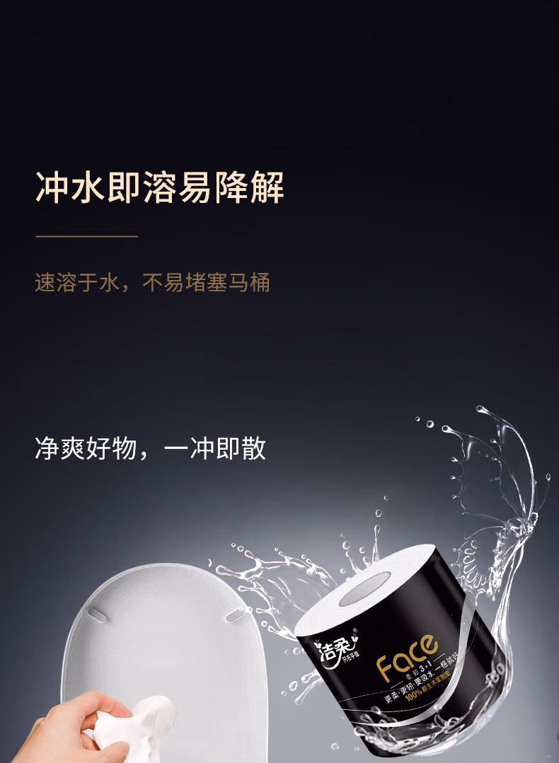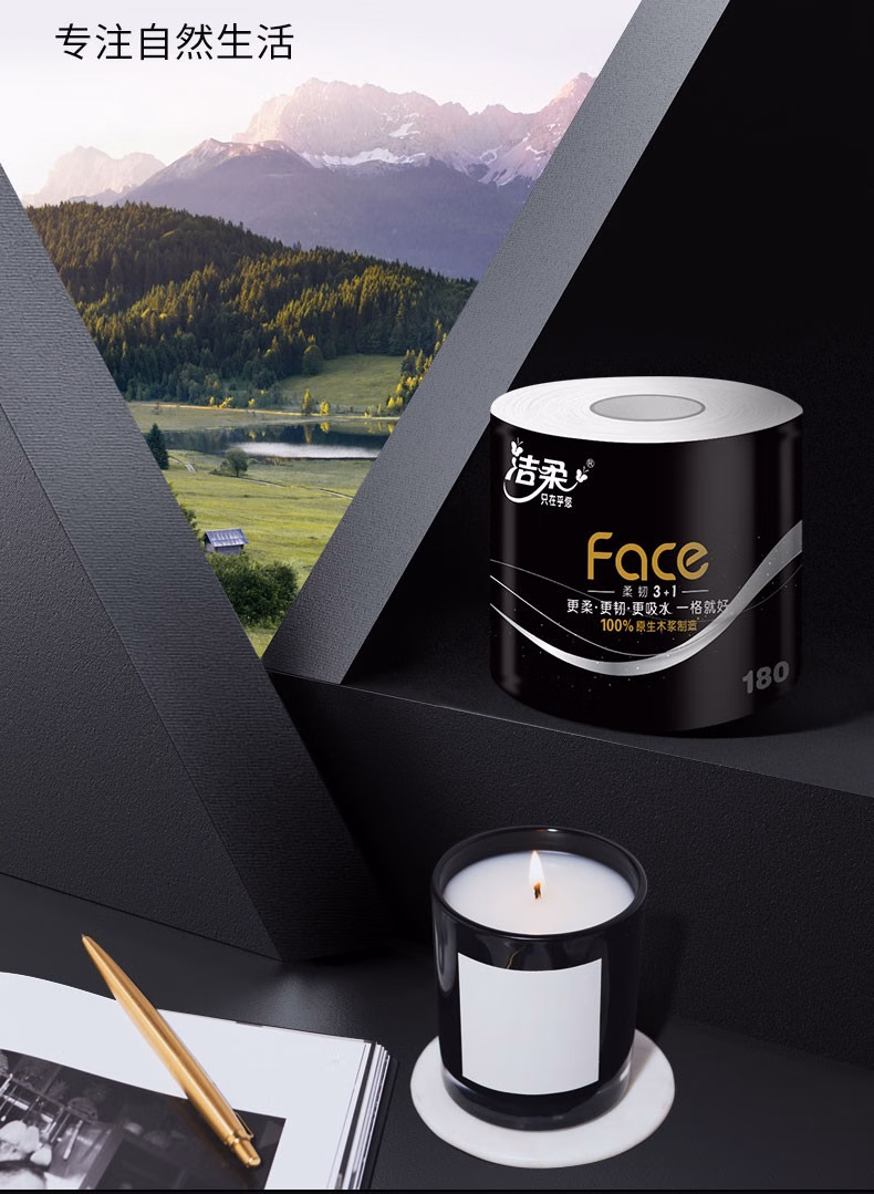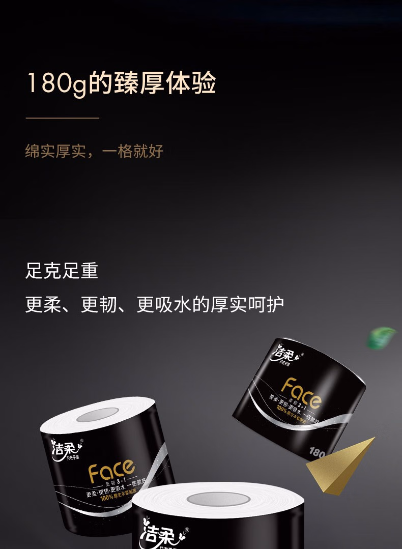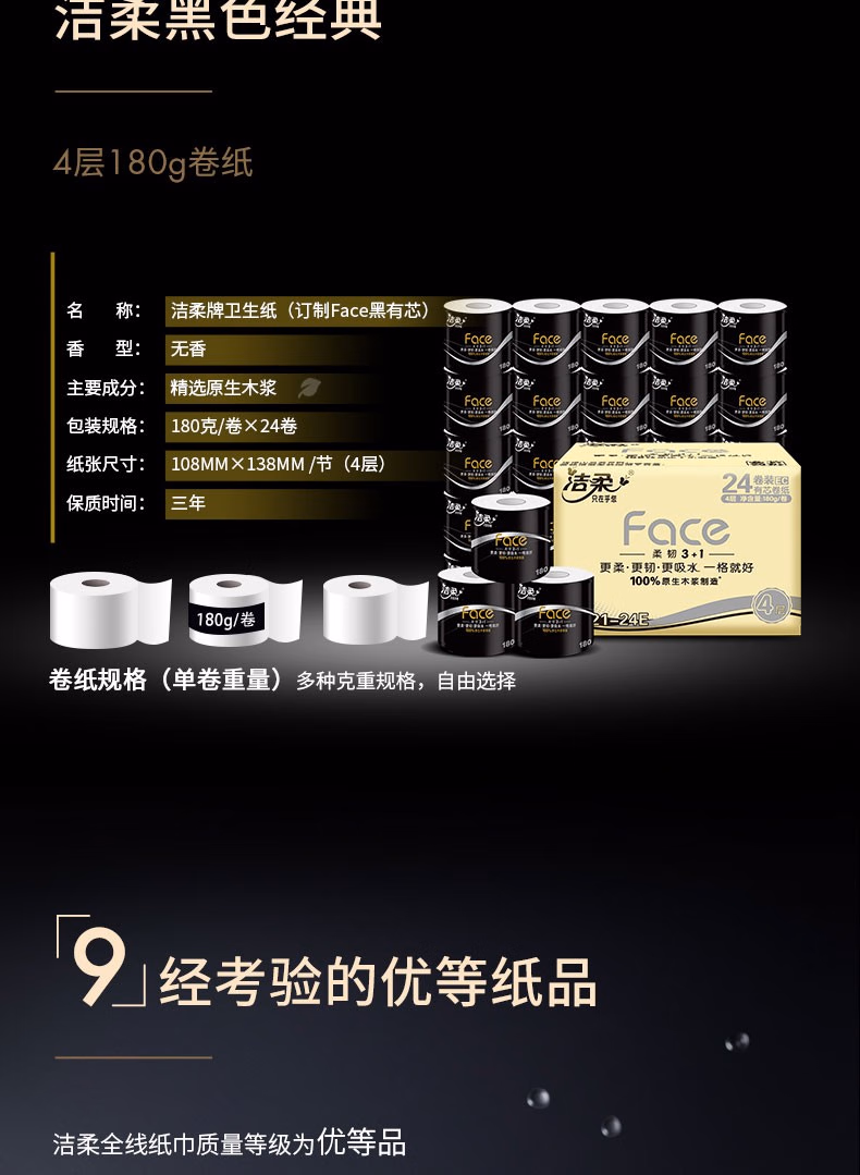 洁柔洁柔牌卫生纸订制face黑有芯4层180g24卷/箱可湿水卷纸卫生纸 单位:箱