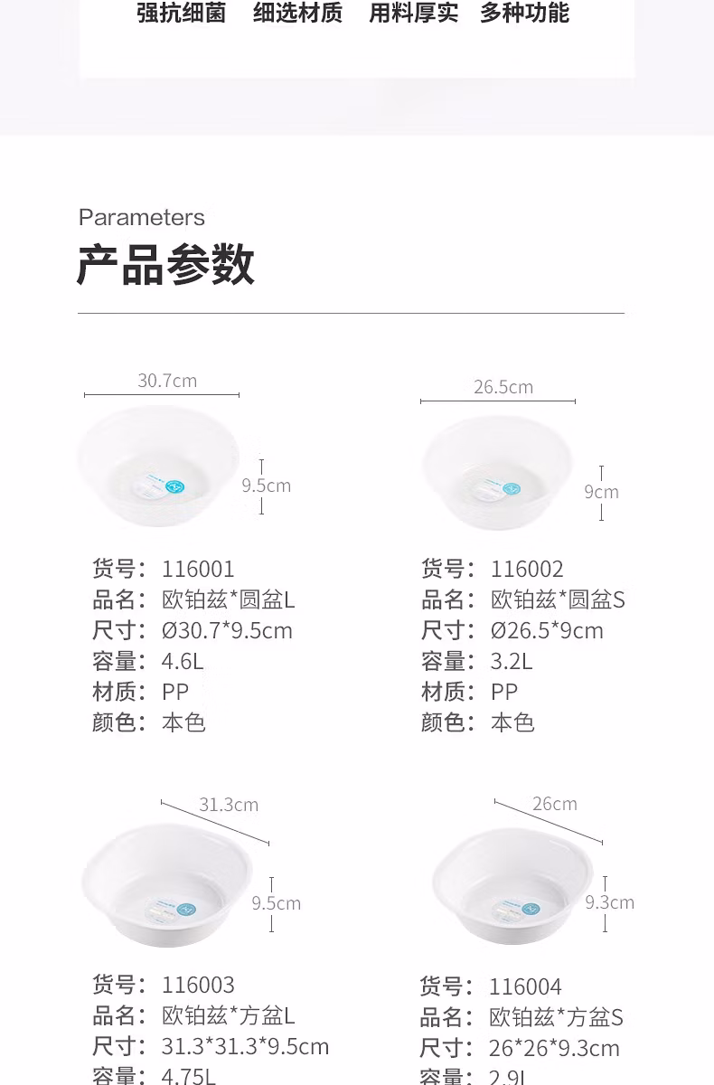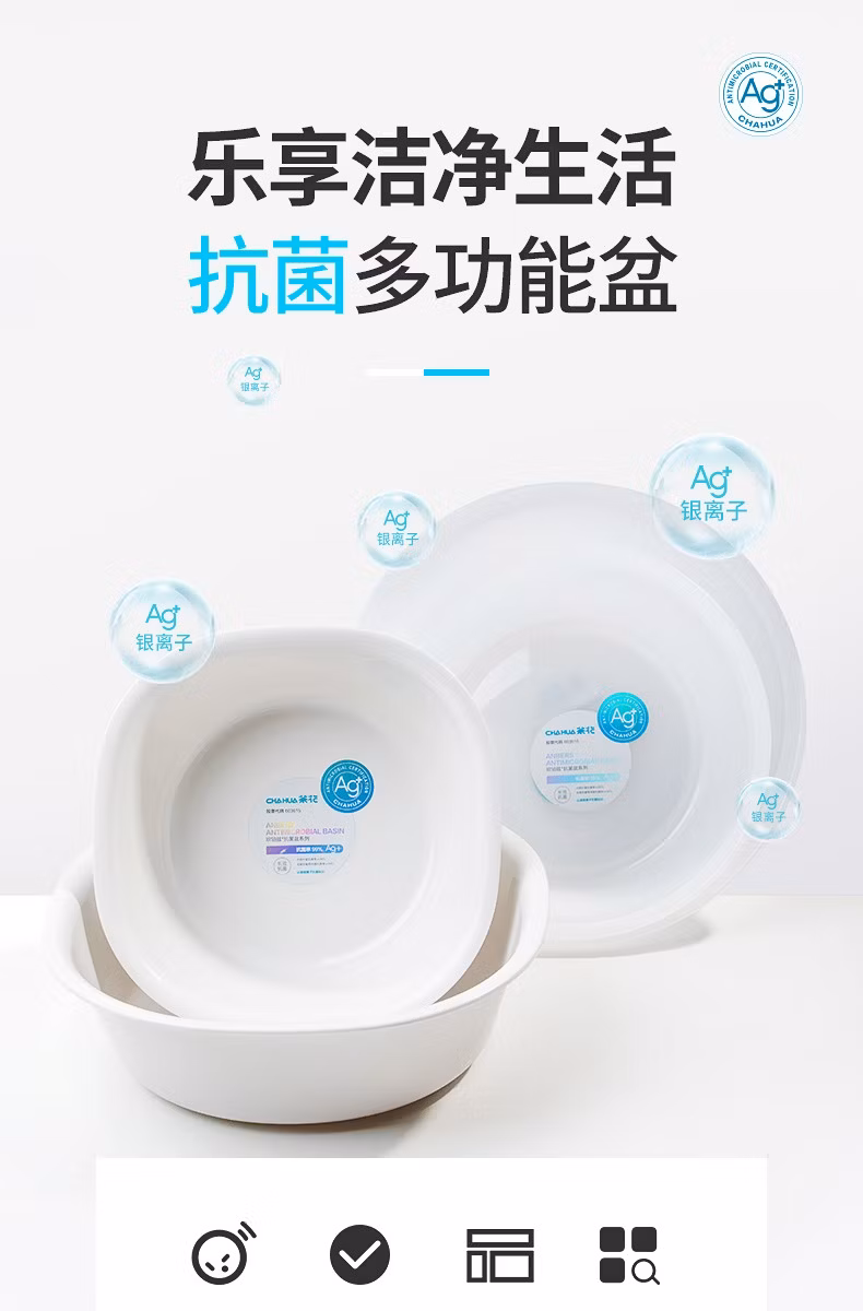 • 商品名称:茶花银离子抗菌加厚脸盆塑料脚盆洗PP新生婴儿童大小脸盆洗菜盆 【抗菌款小号】圆盆