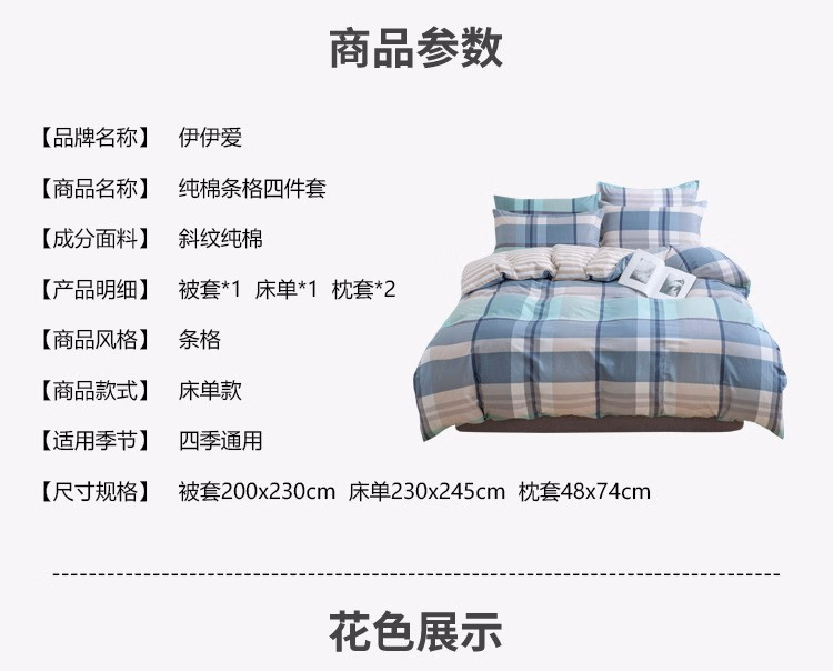 • 商品名称:伊伊爱纯棉系列四件套(计价单位:套) 时尚秀场 QMTJ-17XK-1001/200*230cm
