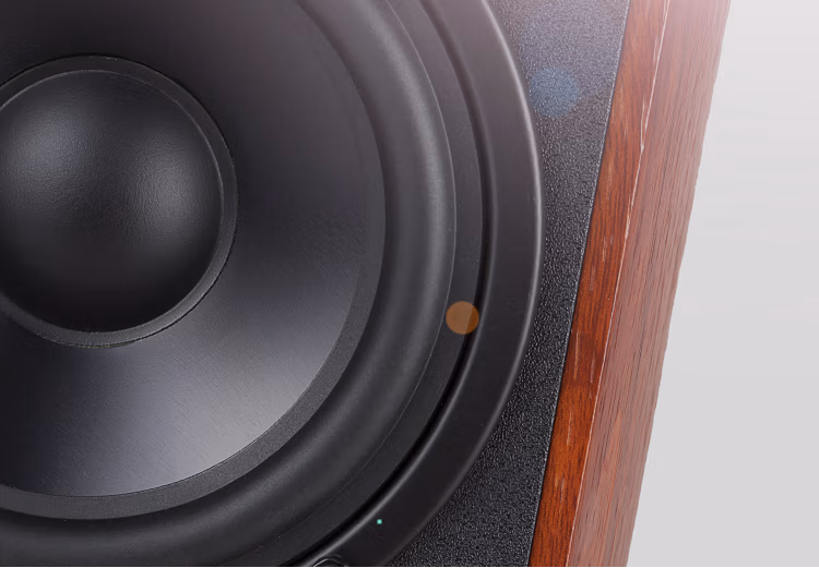 R2000DB采用漫步者开发的25mm特殊涂层丝绢膜球顶高音单元,“鹰眼”设计,深邃而迷人;配合高效钕铁硼磁钢,失真低,音色圆润,丝丝入耳,高音清晰而通透。
