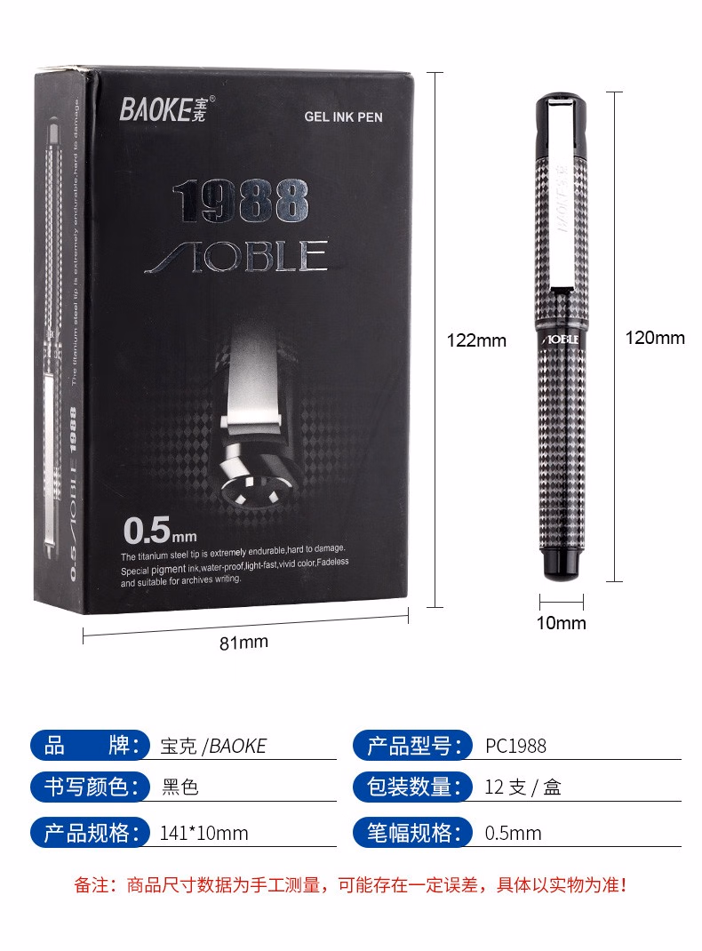 宝克(BAOKE) PC1998 0.5mm 中性笔 (计价单位:支) 黑色