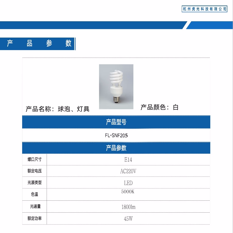 • 商品名称:虎光风行 球泡 FL-SNF205 45W 白色