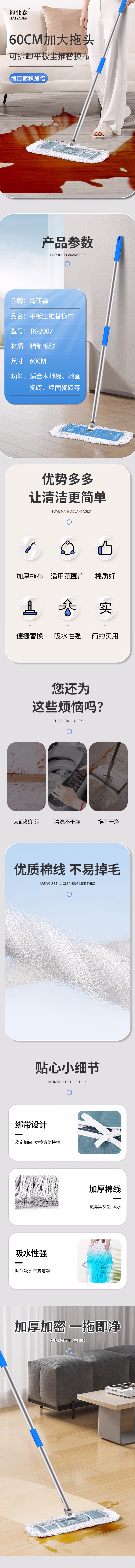 海亚森 TK-2007 60CM 拖把替换布 1.00 把/包 (计价单位:包) 蓝色