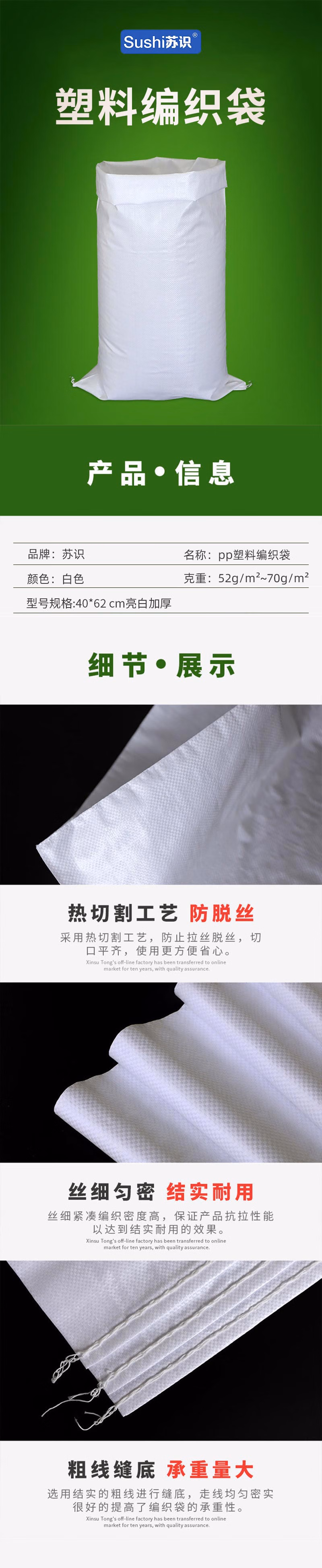 • 商品名称:苏识 45*77 cm亮白加厚 pp塑料编织袋 (计价单位:个) 白色