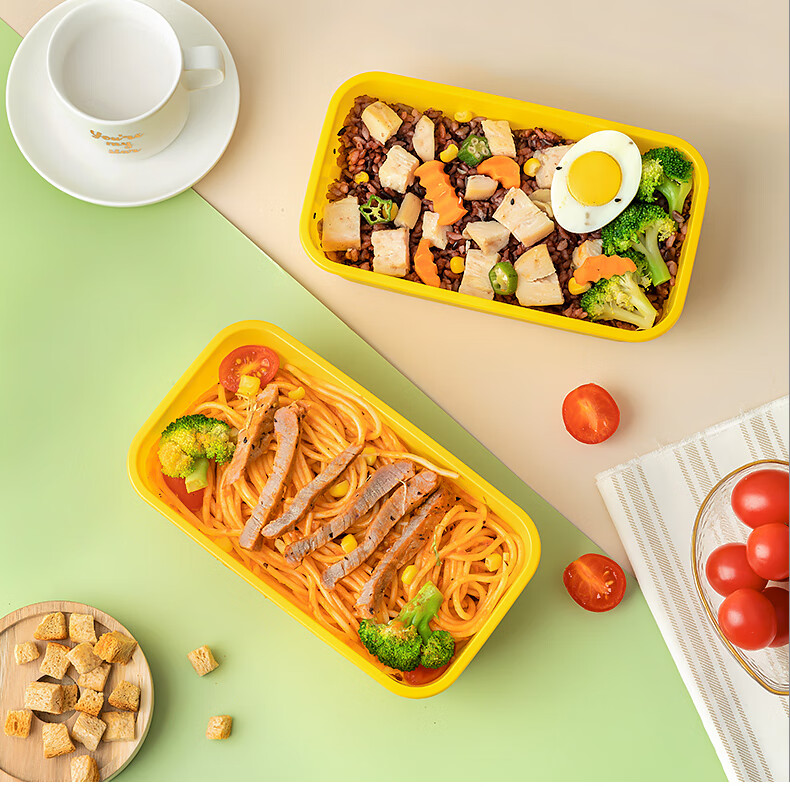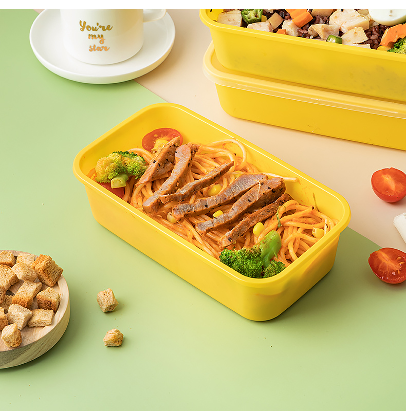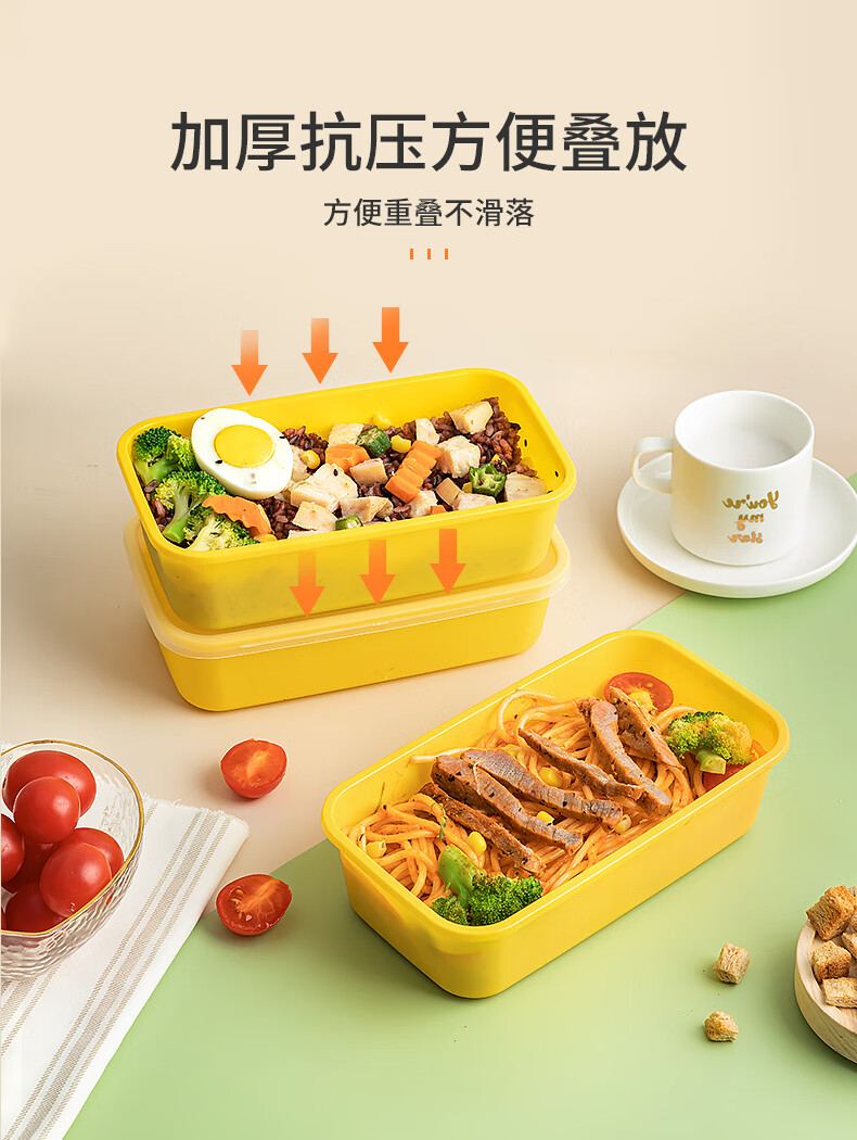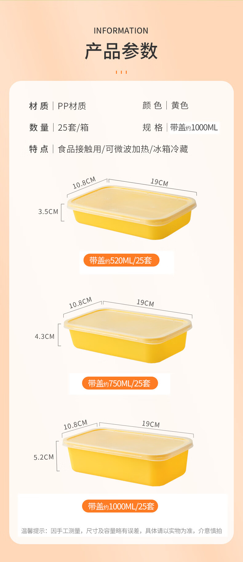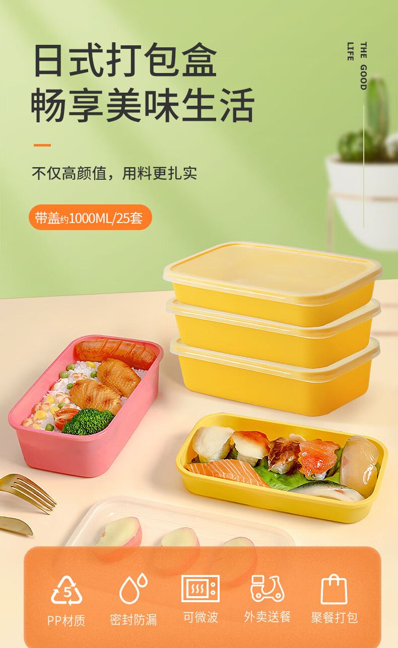 特美居一次性饭盒长方形日式快餐盒加厚带盖打包盒餐具黄色25套装1000ml 单位:箱
