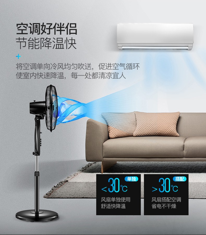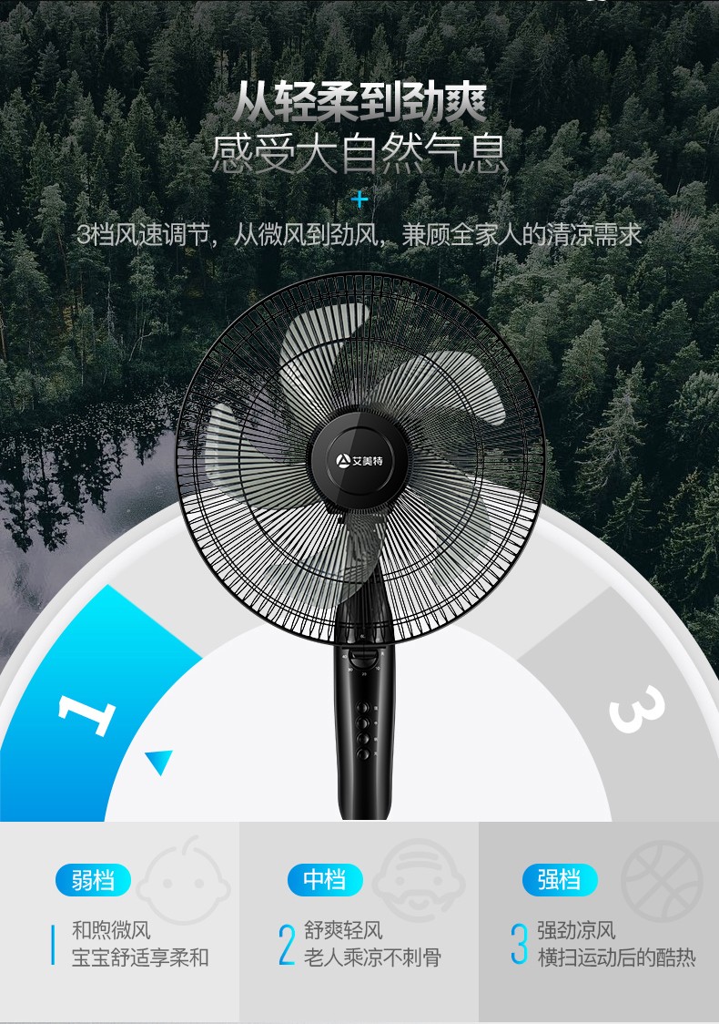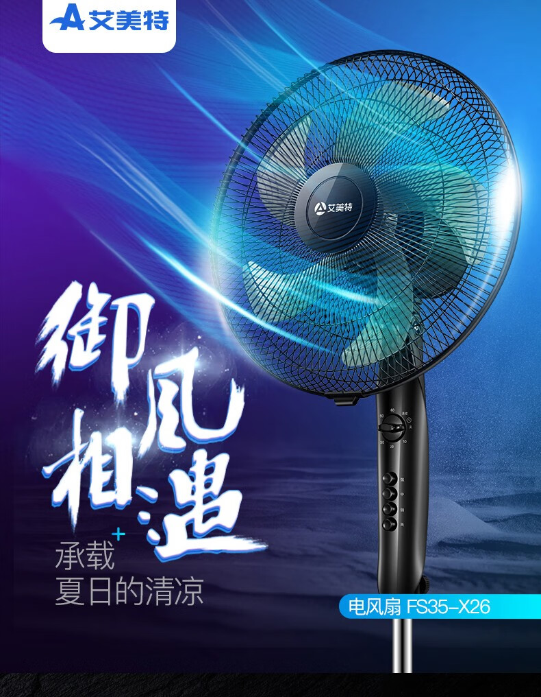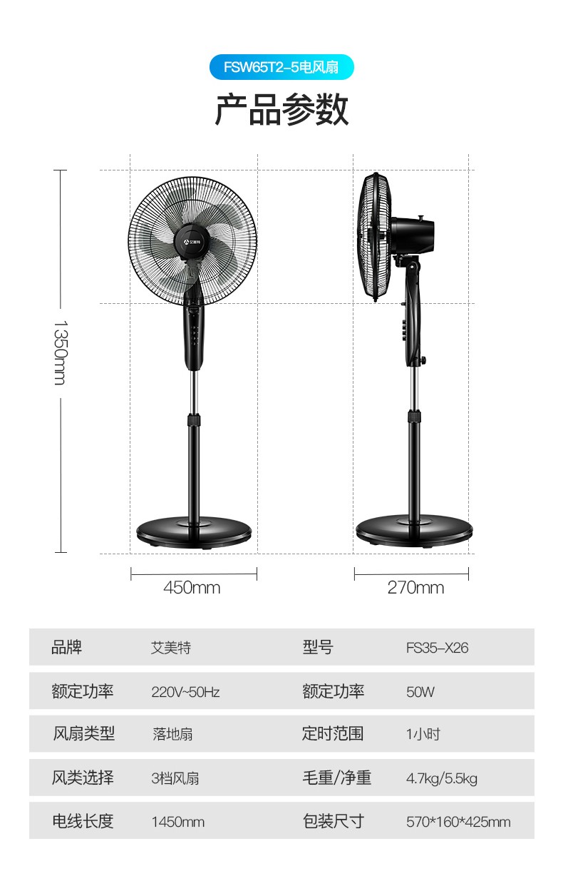 艾美特 落地扇机械家用节能省电定时摆头大风力五叶电风扇FS35-X26