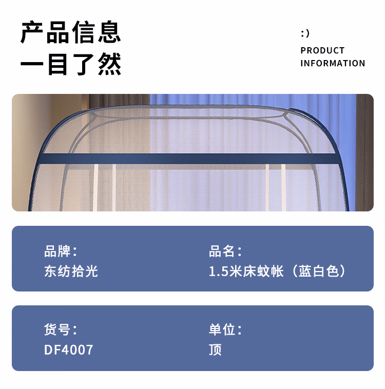 东纺拾光 DF4007 1.5米 蚊帐 蚊帐 1.00 张/顶 (计价单位:顶) 蓝白色