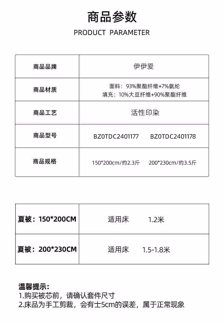 • 填充物成分:涤纶(聚酯纤维),大豆蛋白纤维(大豆纤维)