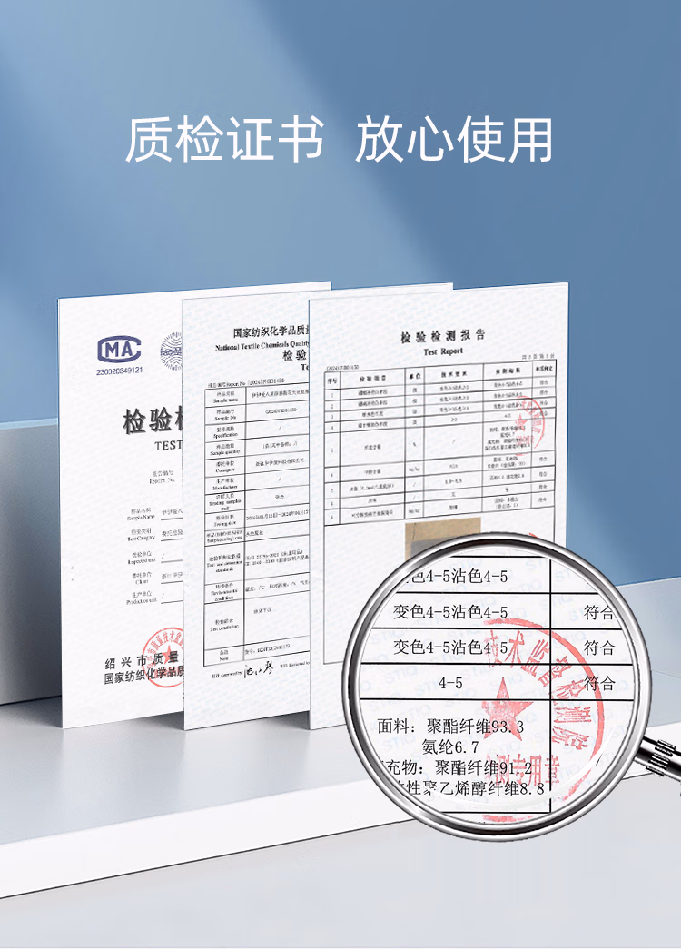 • 面料成分:氨纶(聚氨酯弹性纤维)7%,涤纶(聚酯纤维)93%