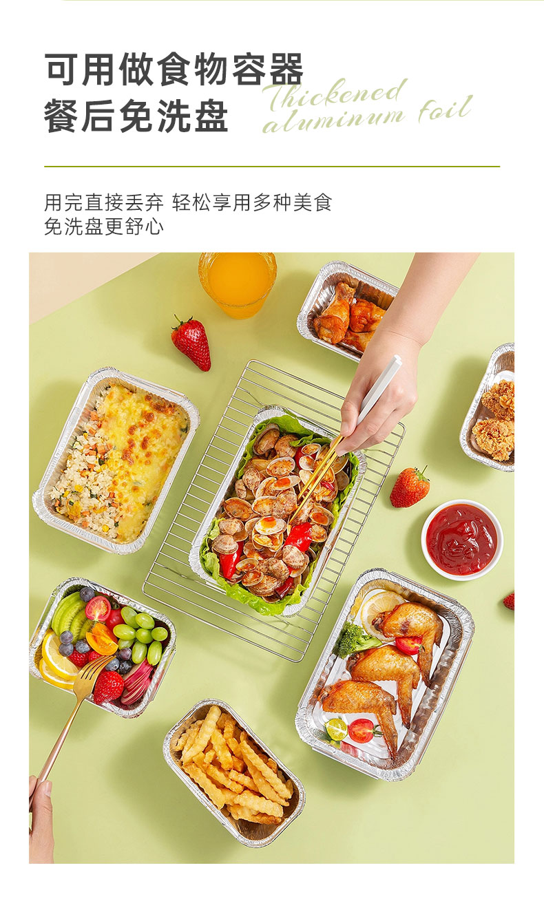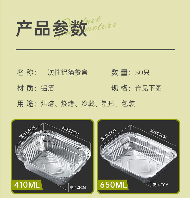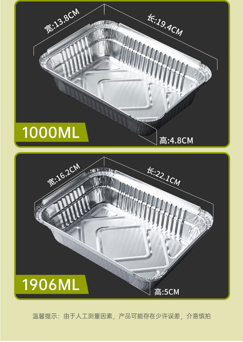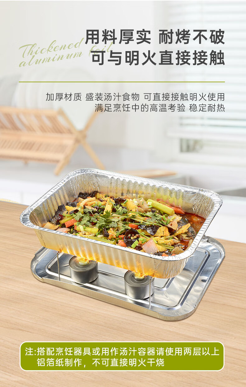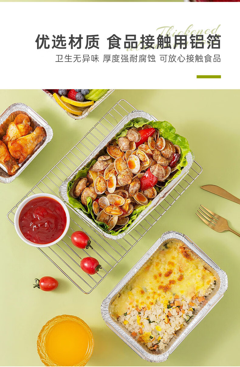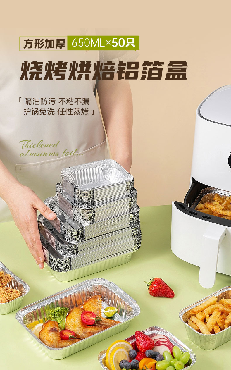 特美居一次性锡纸铝箔盒烤箱烧烤方形锡纸盒空气炸锅锡箔纸50只装650ml 单位:箱