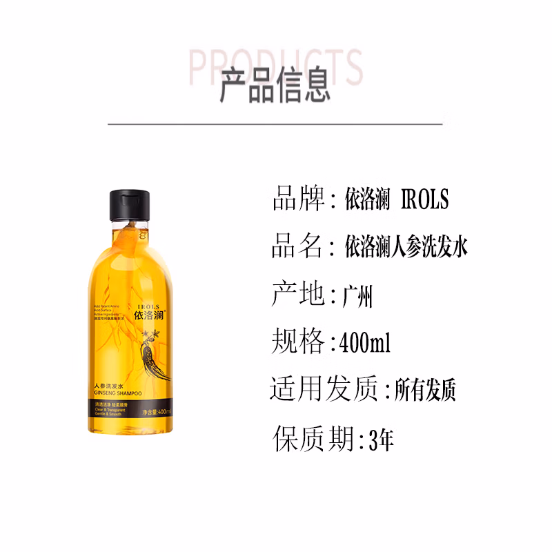 依洛澜 400ml 适用所有发质 人参 洗发水 (计价单位:瓶)