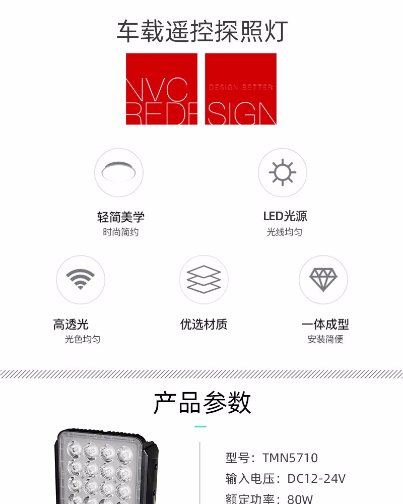 • 商品名称:吉特(GT) 车载遥控探照灯 TMN5710 80W,IP66,DC12-24V,5000K 主机