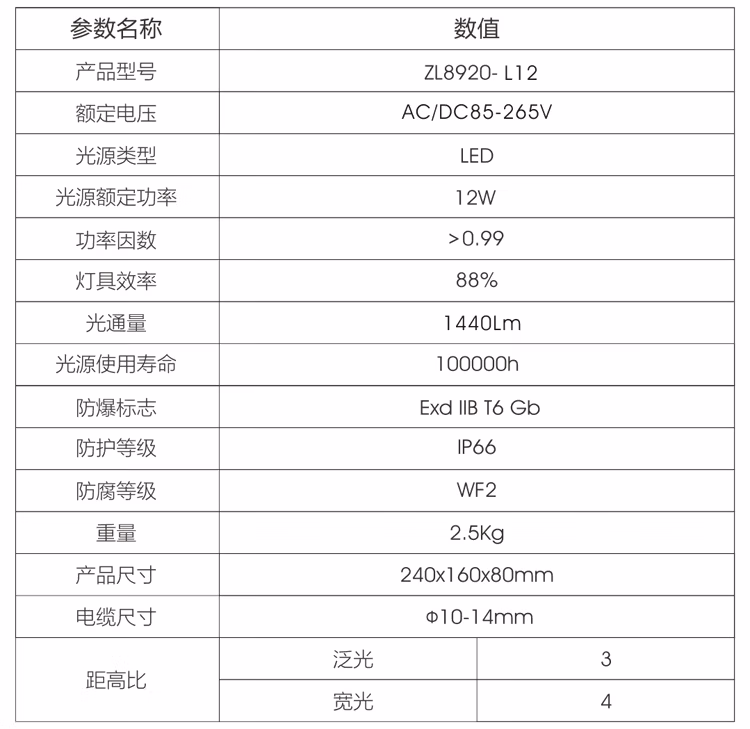 众朗星 ZL8920-L12 AC/DC85-265V 12W Exd IIB T6Gb 防爆泛光工作灯 (计价单位:盏) 黄色