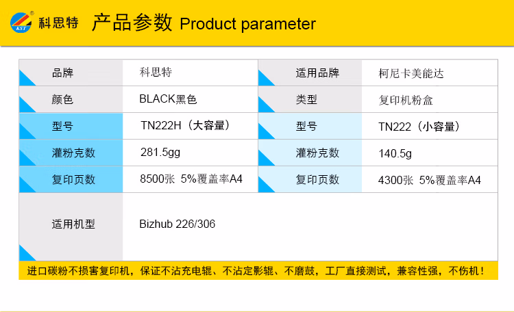 科思特 K TN222-1 标准装 小容量 打印量约4300页 粉盒 1.00 只/支 (计价单位:支) 黑色
