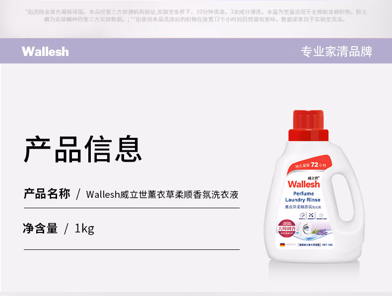 威立世(wallesh) 1kg 薰衣草柔顺香氛 洗衣液 (计价单位:瓶) 白色