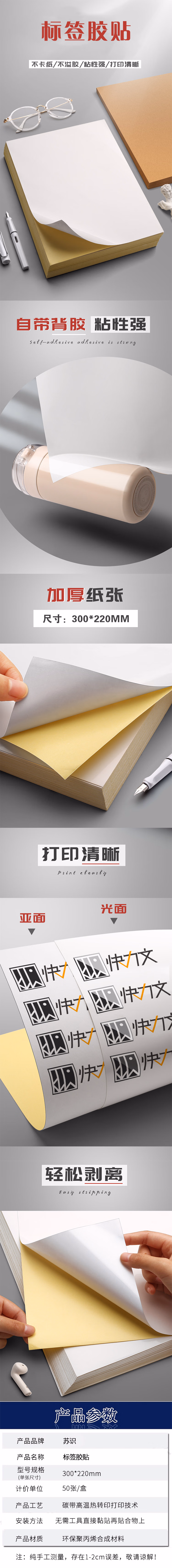 苏识 300*220mm 白色 标签胶贴 1.00 卷/盒 (计价单位:盒) 白色