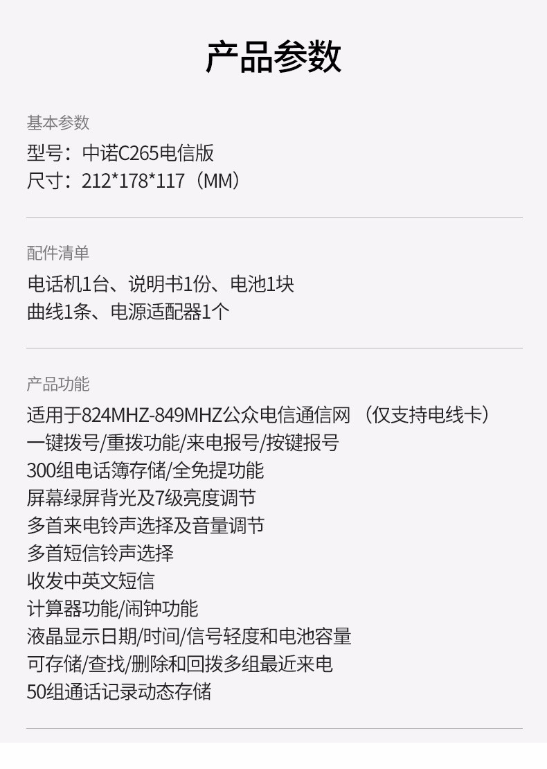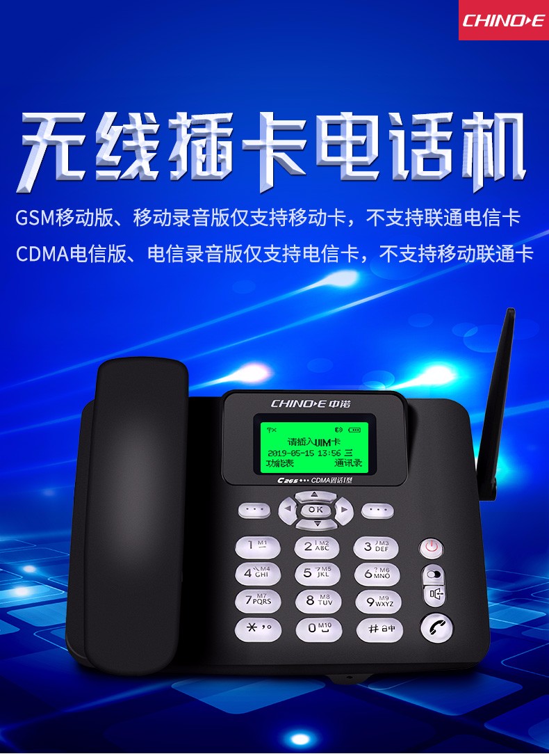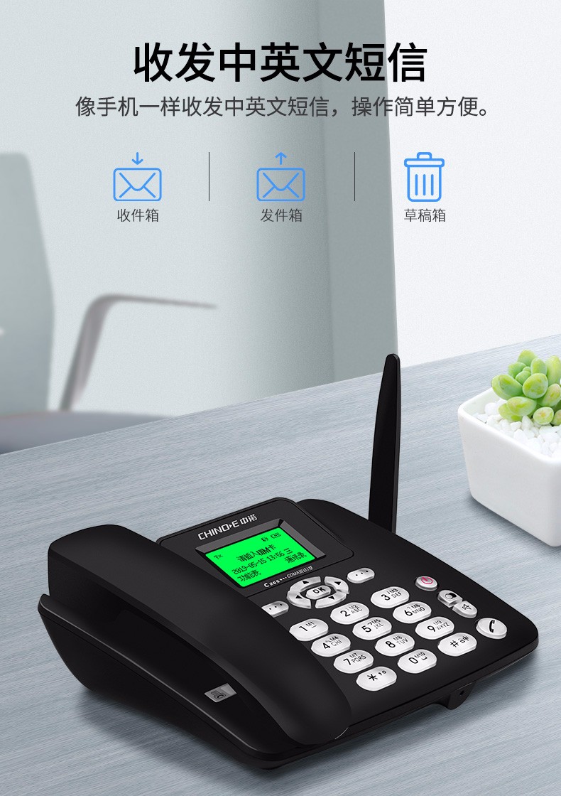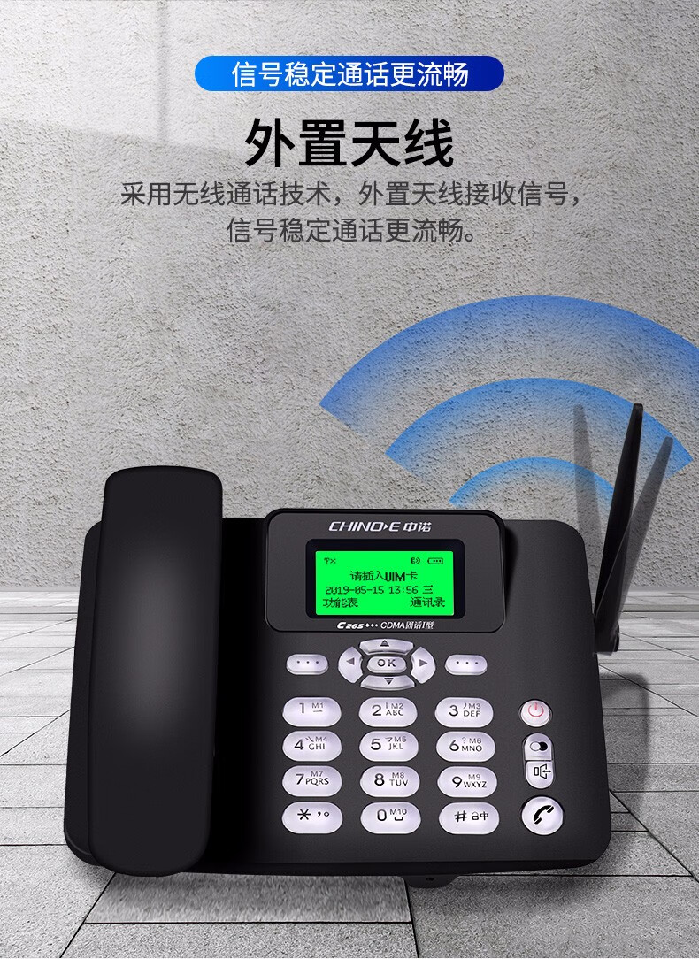 中诺无线固话CDMA电信2G网插卡电话机兼容2G3G4G手机SIM卡家用办公移动座机C265电信版黑色 单位:台