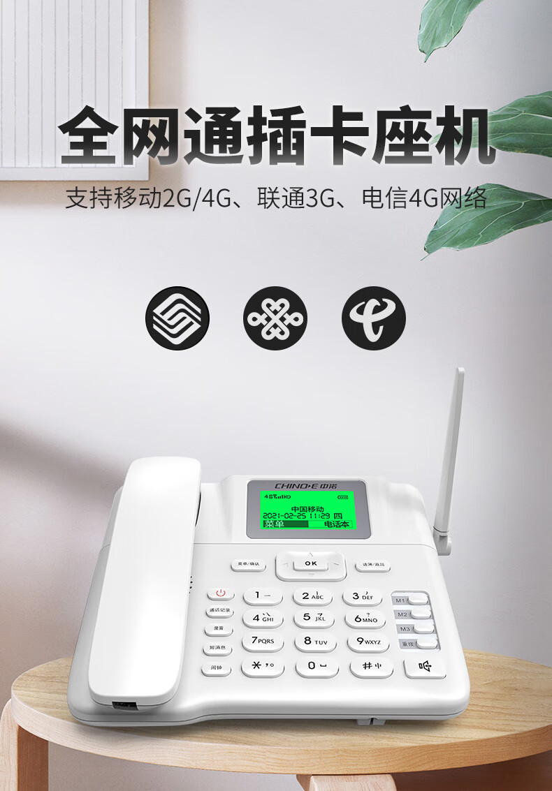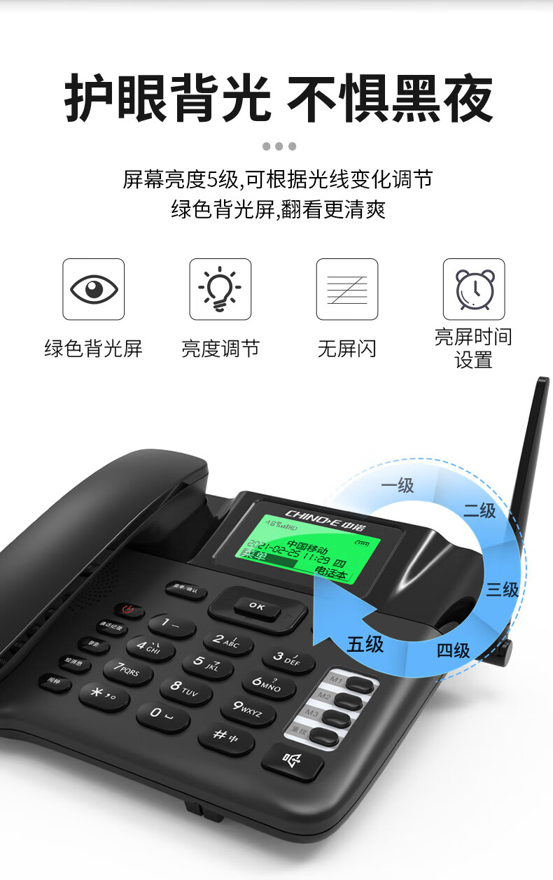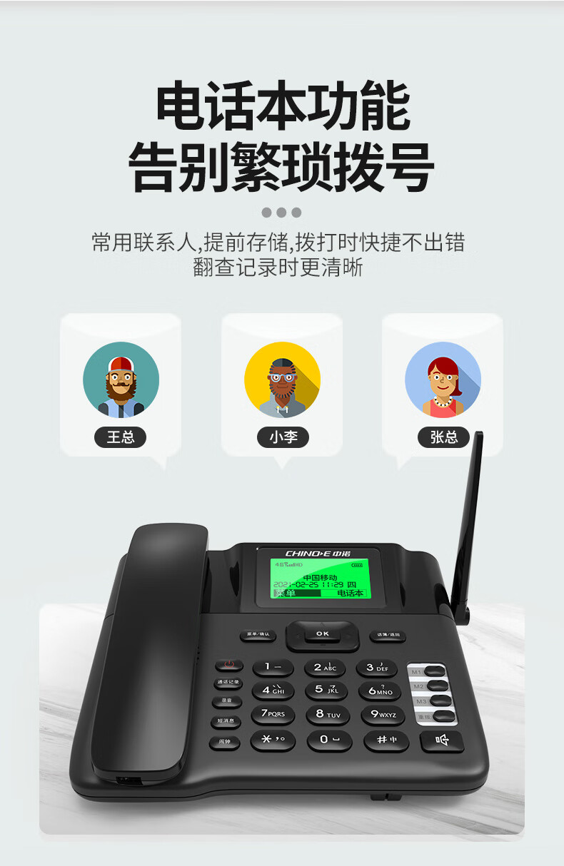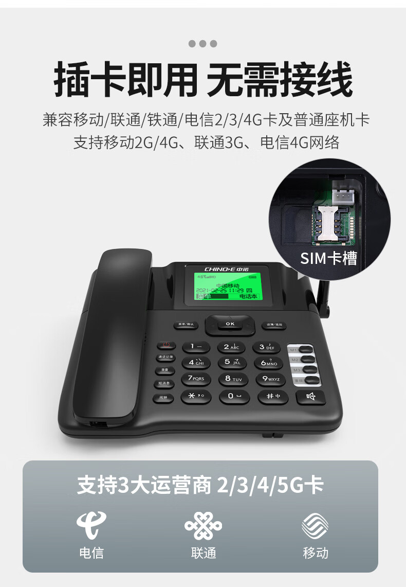 中诺全网通无线固话插卡电话机支持广电移动联通电信4G网兼容联通3G网家用办公座机C265至尊版黑色 单位:台