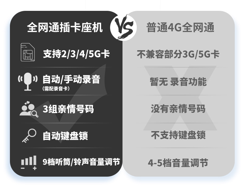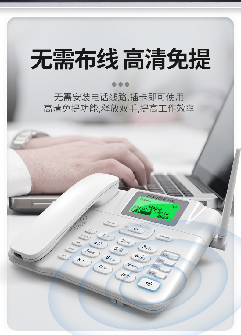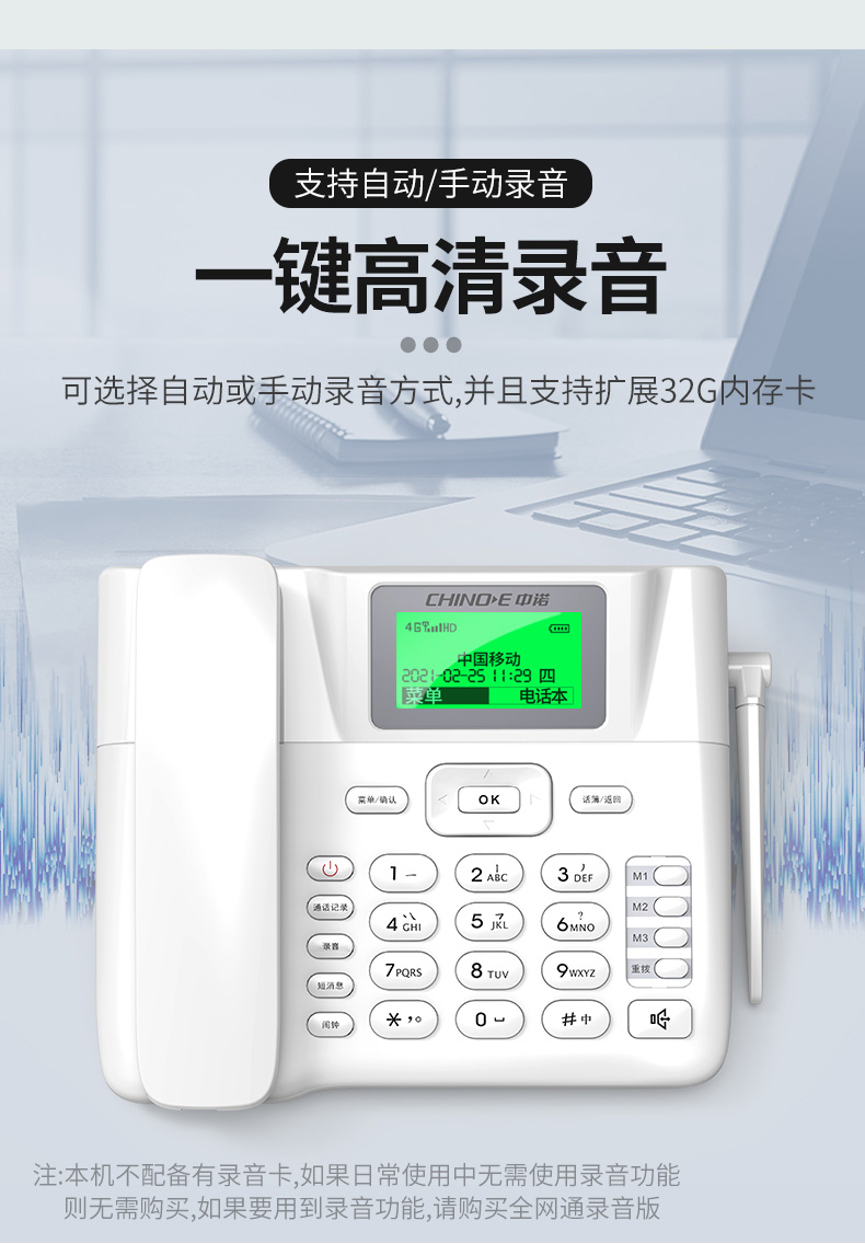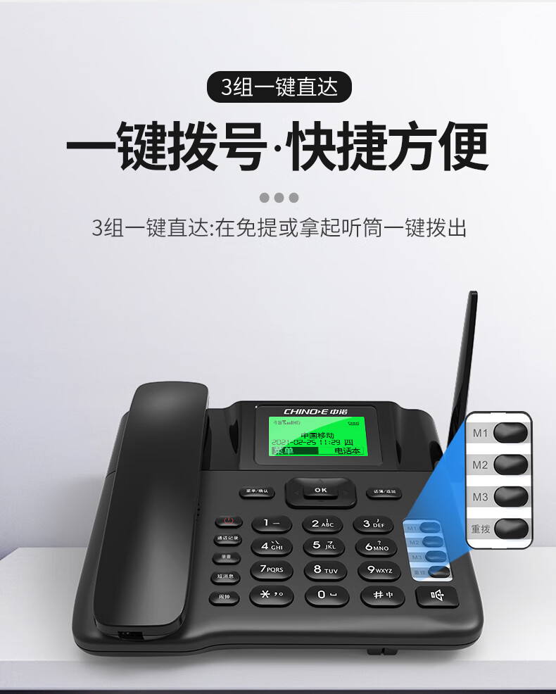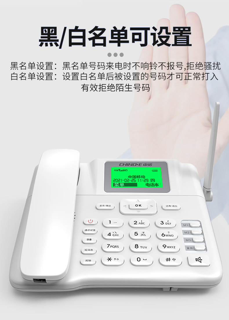 中诺全网通无线固话插卡电话机支持广电移动联通电信4G网兼容联通3G网家用办公座机C265至尊版黑色 单位:台