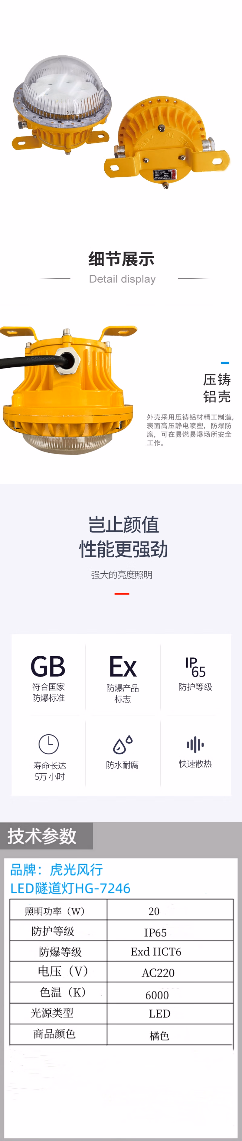 虎光风行 HG-7246 20W IP65 ExdIICT6 AC220V 6000K LED LED隧道灯 1.00 盏/套 (计价单位:套) 橘色