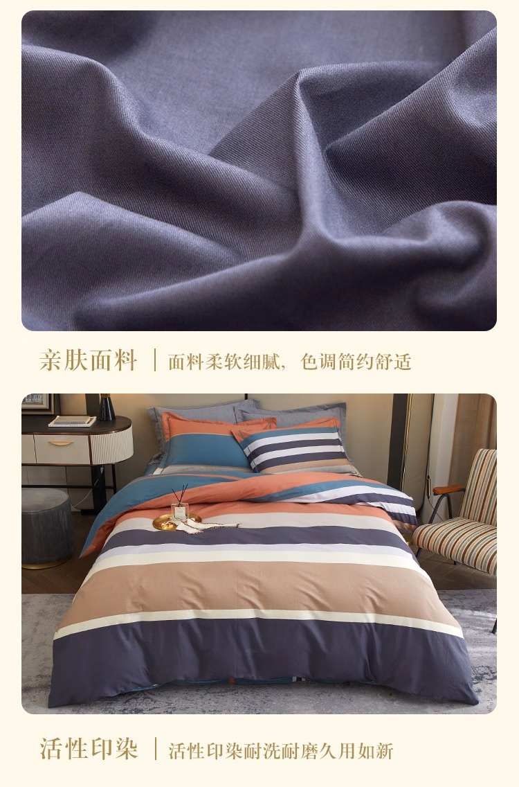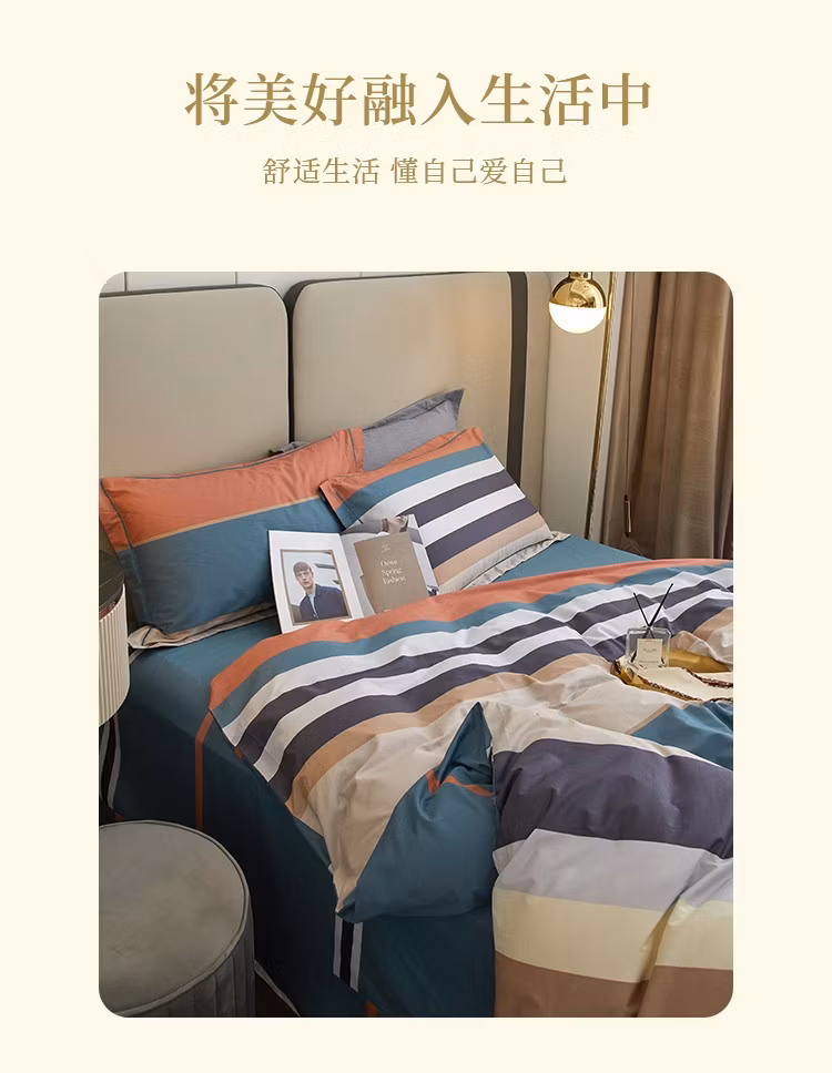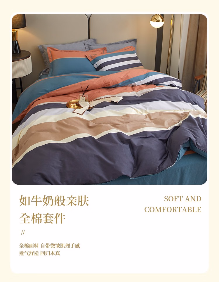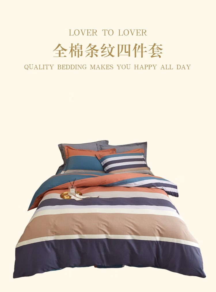 • 商品名称:伊伊爱 全棉加密条纹四件套 (单位:套) 时光偶遇(桔) 220*240cm/TJ0HJC2201650