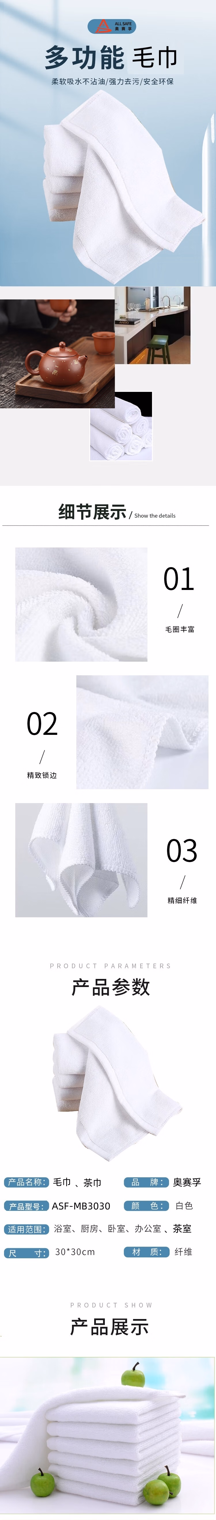 奥赛孚 ASF-MB3030 30cm*30cm 毛巾 (计价单位:条) 白色