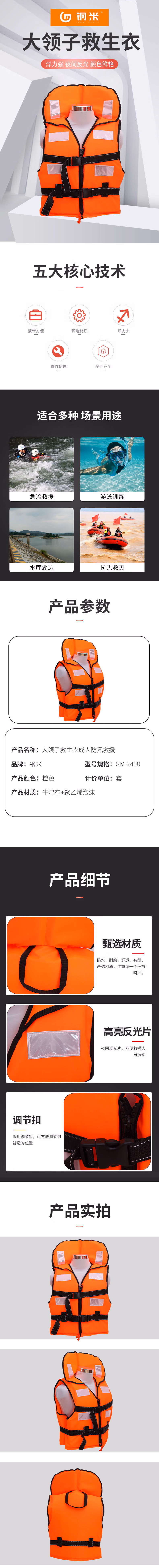 钢米 GM-2408 成人防汛救援 大领子救生衣 (计价单位:套) 橙色