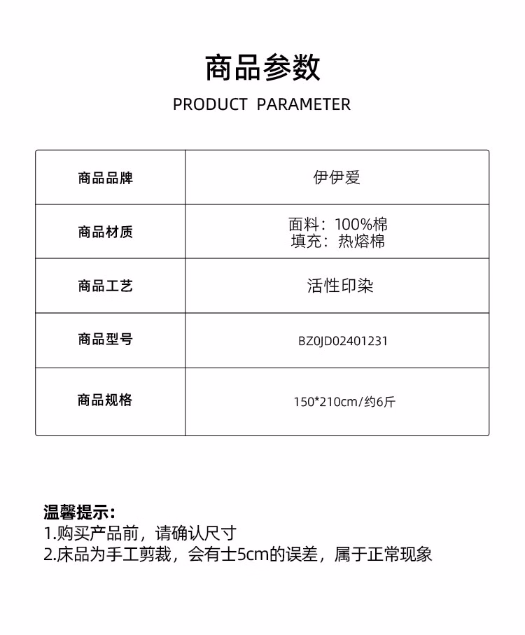伊伊爱 BZ0JD02401231 150*210cm 橄榄绿热熔棉被 被子 1.00 件/条 (计价单位:条) 橄榄绿