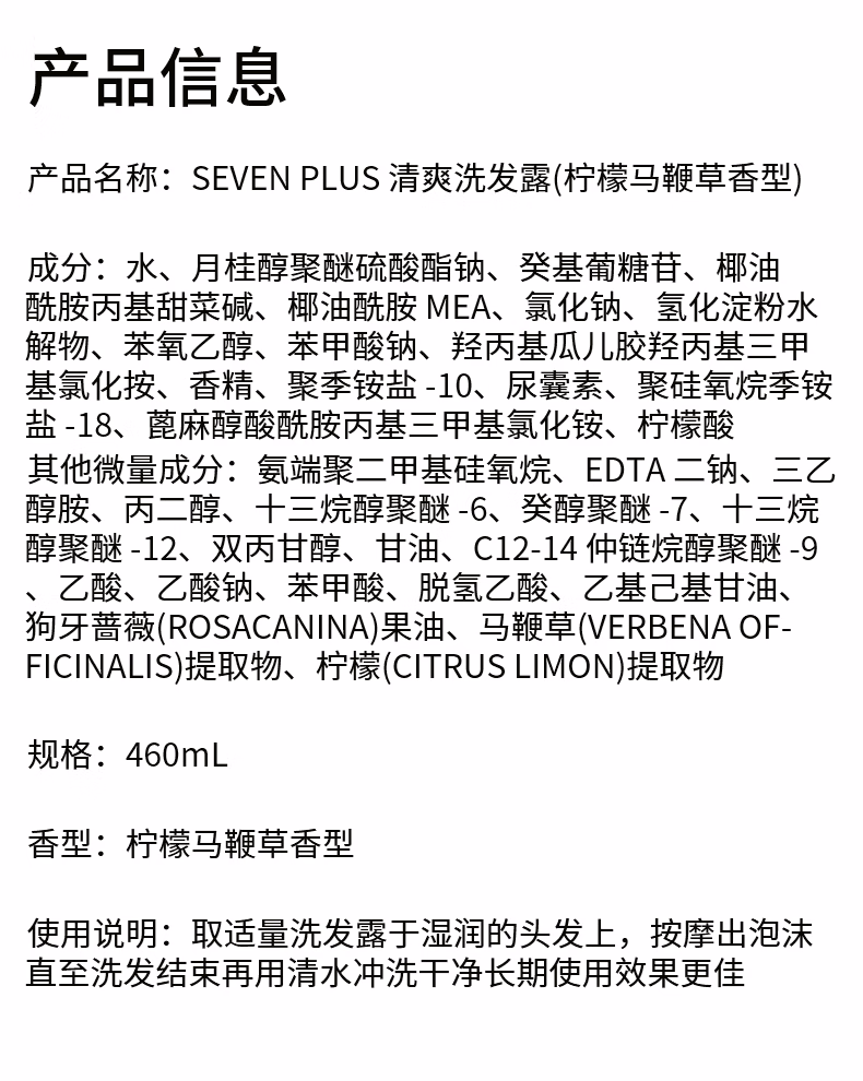 SEVEN PLUS 马鞭草润肤露 460ml*1 护肤膏 (计价单位:瓶) 白色