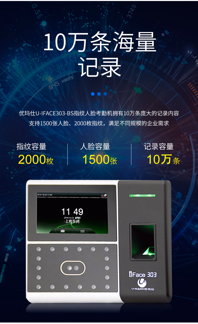 优玛仕(U-MACH) U-Iface303-BS指纹 考勤机 (计价单位:台) 黑色