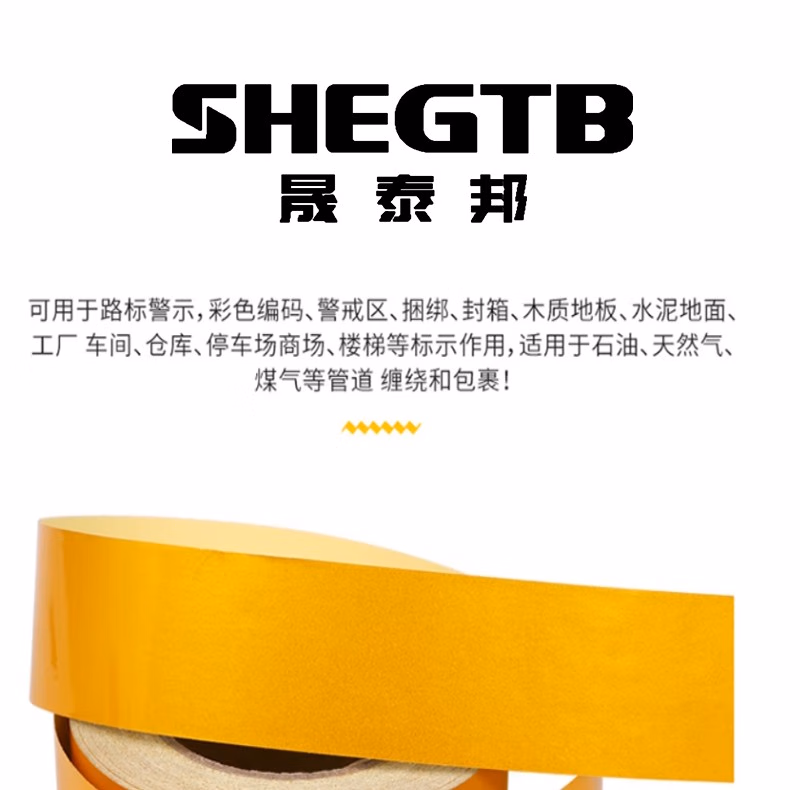 晟泰邦 反光条警戒胶带 电线杆墙贴地板贴标志反光膜(卷) (黄色 宽5cm长45米) 单位:卷