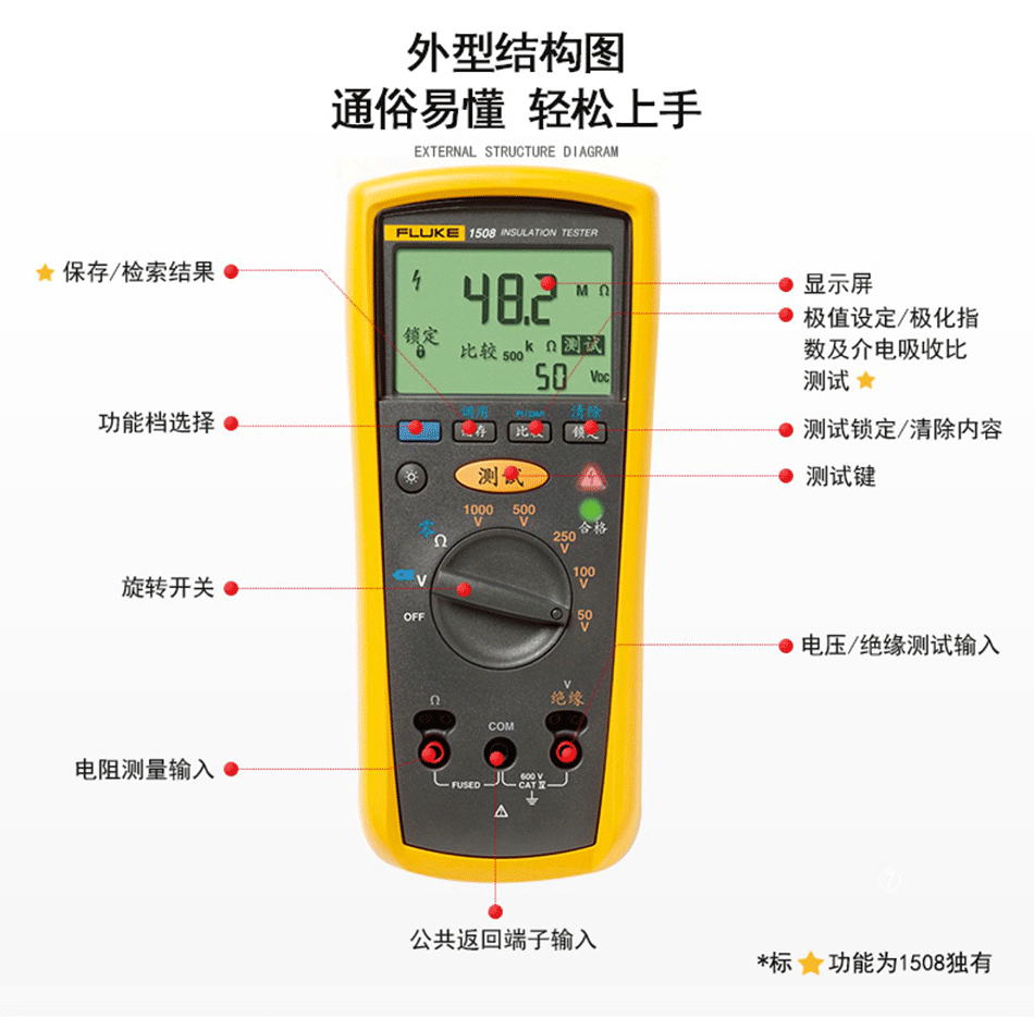 福禄克(FLUKE)1508 IND绝缘电阻测试仪 10 GΩ FLUKE-1508 IND 单位:台