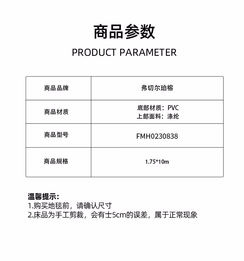弗切尔珀榕 FMH0230838 底部材质PVC 上部面料涤纶 1.75*10m 红 地垫 1.00 个/块 (计价单位:块) 红色