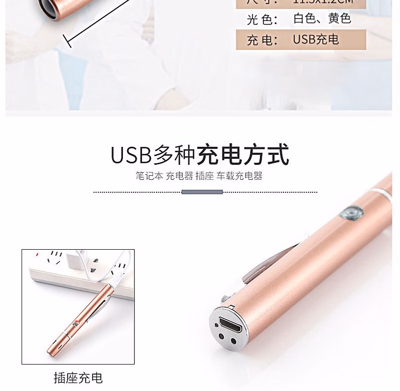 晟泰邦 USB充电手电瞳孔笔灯口耳鼻喉护士检查用手电 照明临床电筒 单位:个