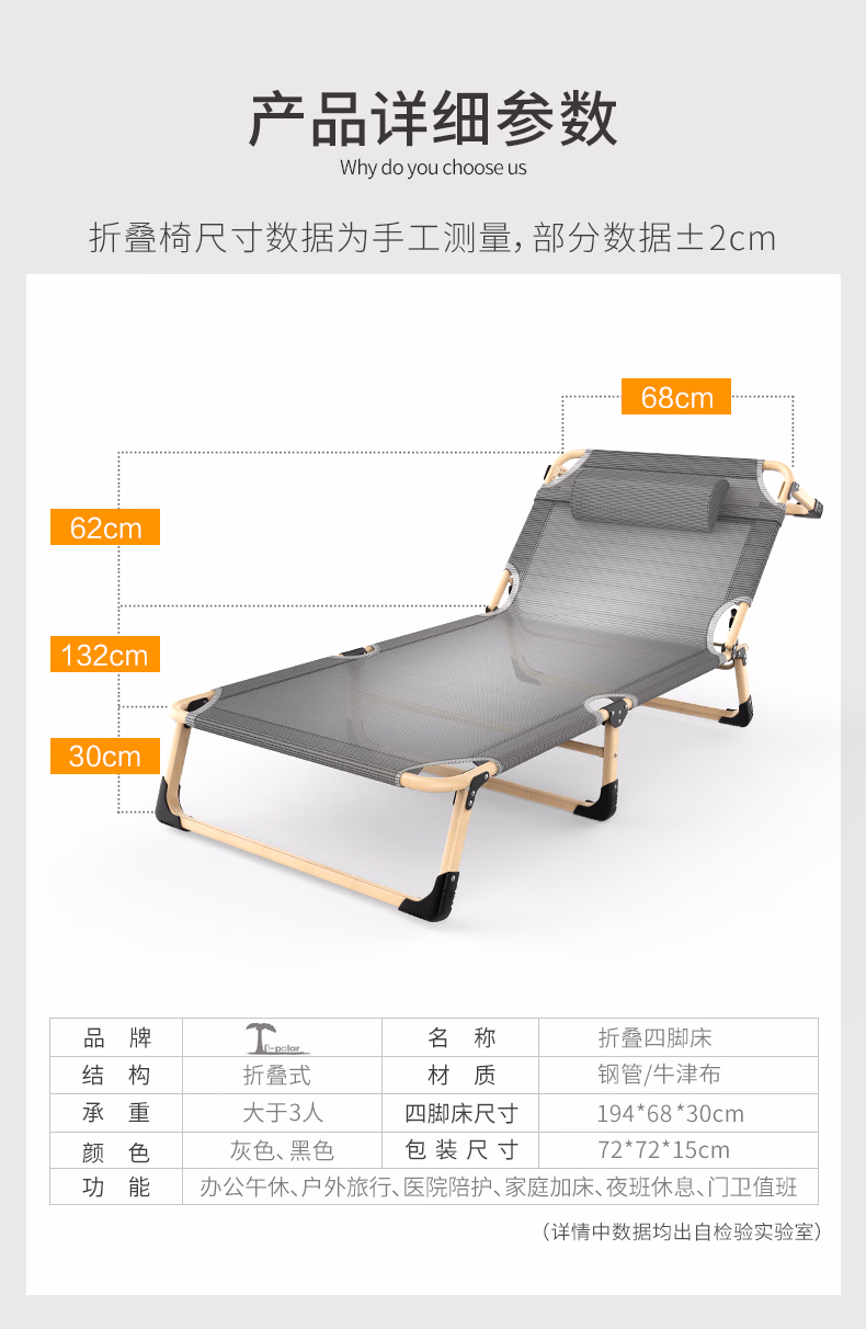 三极户外(Tri-Polar) TP1048单人陪护床特斯林办公室午休午睡床折叠床简易单人床194x63x30cm 午休椅 (计价单位:把) 黑色