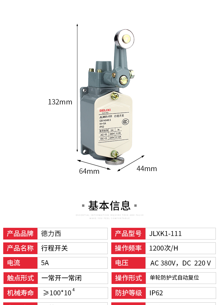德力西行程开关JLXK1-111 单轮防护式自动复位限位开关 1常开1常闭行程开关 单位:个