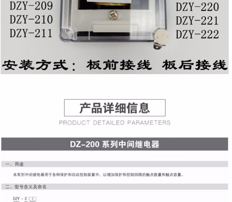 晟泰邦 DZY-202中间继电器DC220V110V电力中间继电器 单位:个