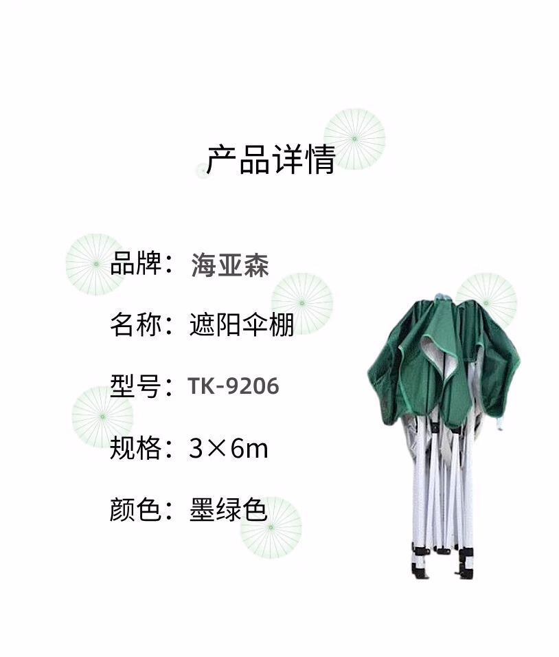 海亚森 3*6m TK-9206 遮阳伞棚 1.00 顶/把 (计价单位:把) 墨绿色