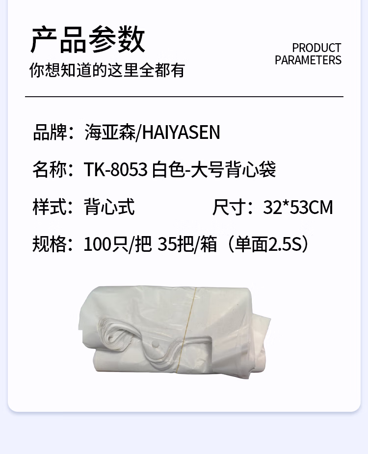 海亚森 53*32**7cm TK-8053 单面2.5S 大号背心袋 塑料编织袋 1.00 个/把 (计价单位:把) 白色
