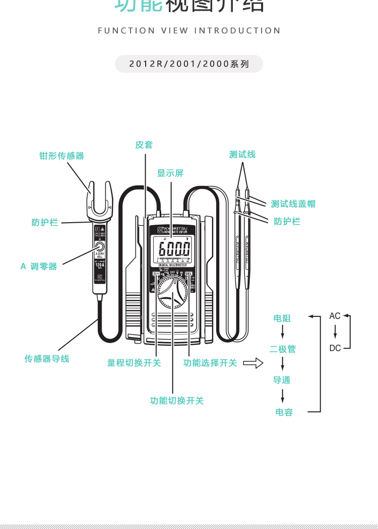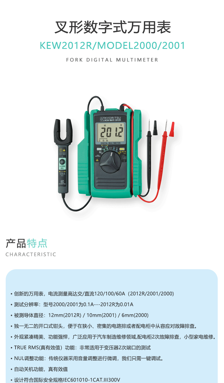 克列茨日本共立KYORITSU\/克列茨2000A/2001A/2012RA数字叉型万用表 2012RA(120A开口12mm分辨率0.01A 单位:台