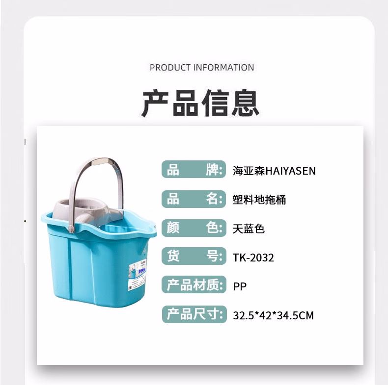 海亚森 TK-2032 32.5*42*34.5cm 塑料地拖桶 拖把 1.00 把/个 (计价单位:个) 天蓝色