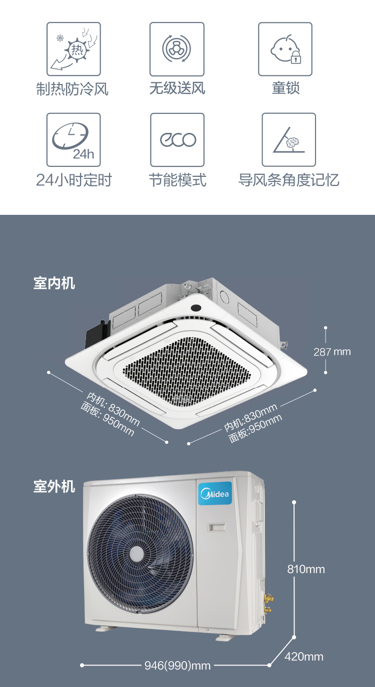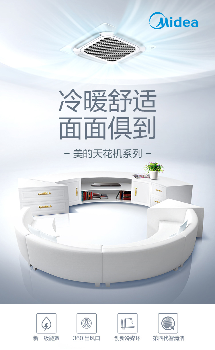 美的(Midea)5匹 新一级能效 变频 中央空调 天花机 嵌入式吸顶机 380V三相电RFD-120QW/BSDN8Y-D(B1) 单位:台 标准安装