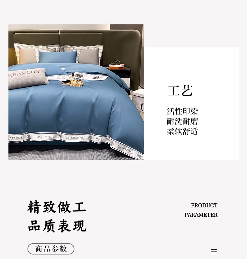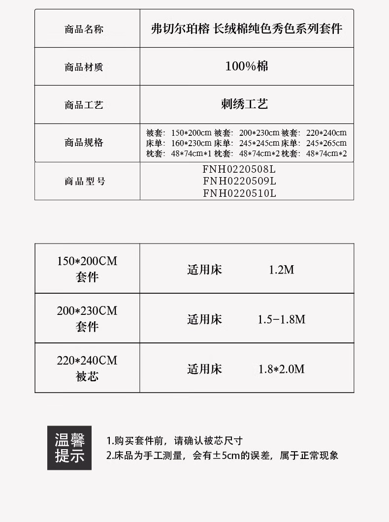弗切尔珀榕 FNH0220508L 150*200cm 长绒棉纯色秀色系列三件套 (计价单位:套) 秀色-宾利蓝