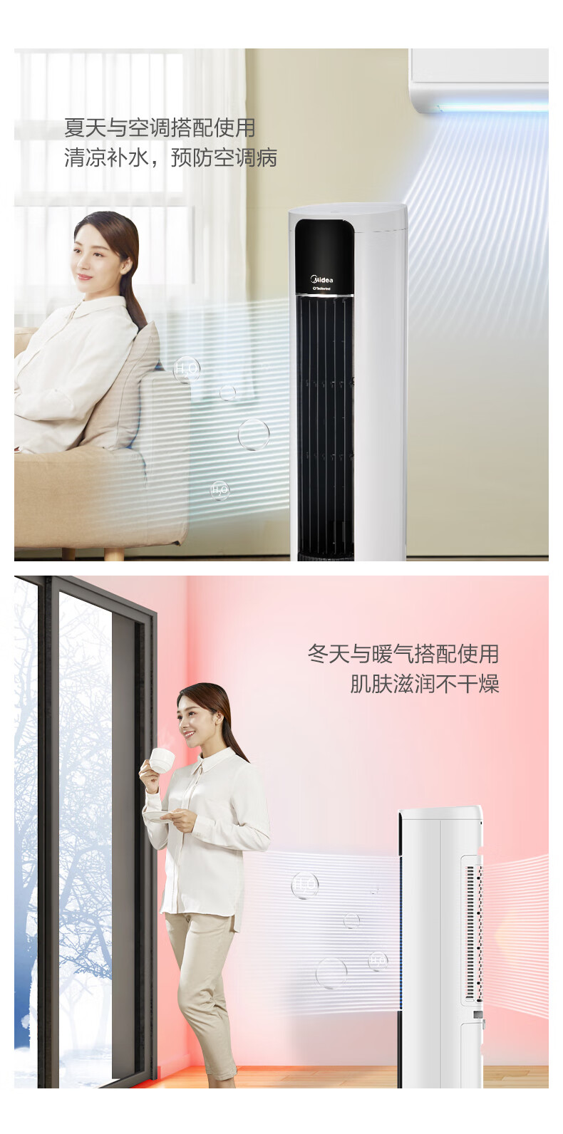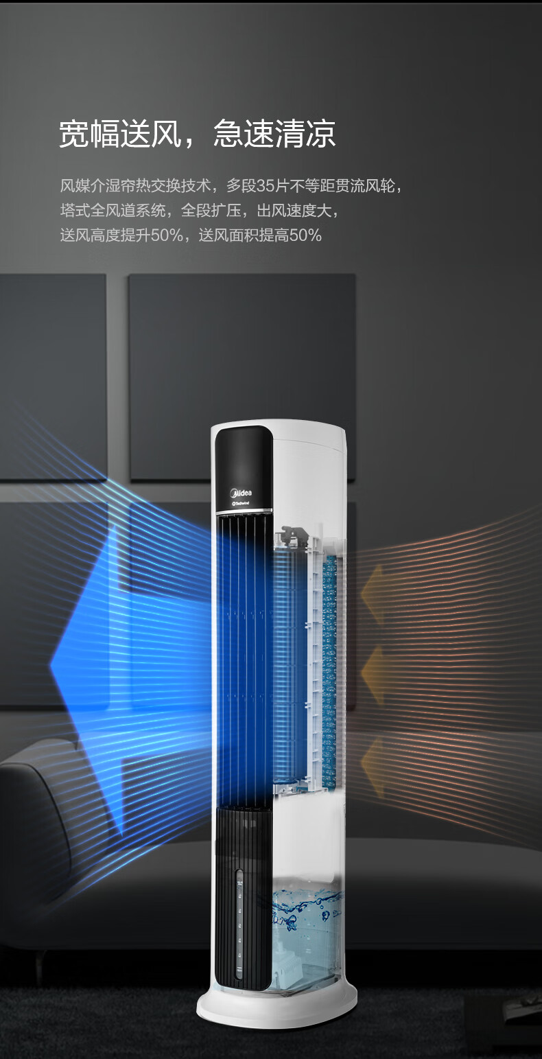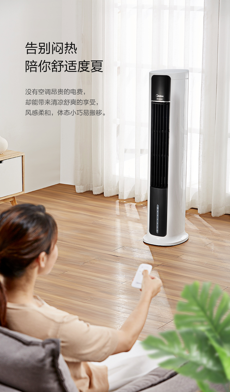 美的(Midea)空调扇冷风扇家用蒸发式冷风机节能省电移动小空调卧室客厅电扇无叶风扇立式制冷塔扇落地 【送风加湿】ACA12XCR 单位:台