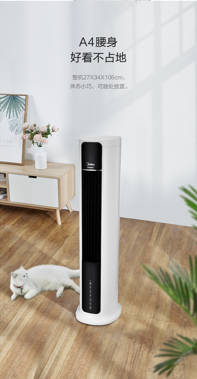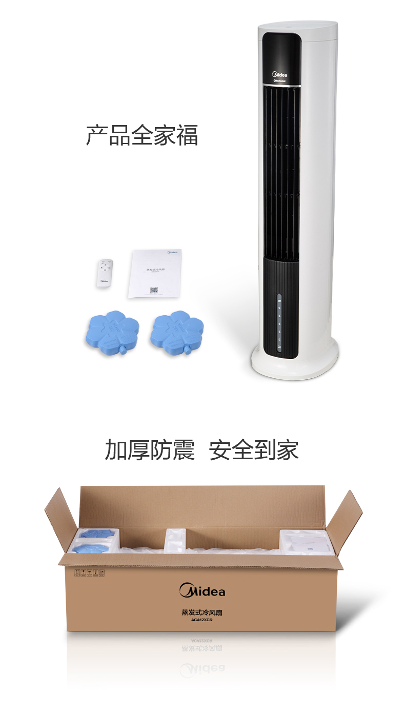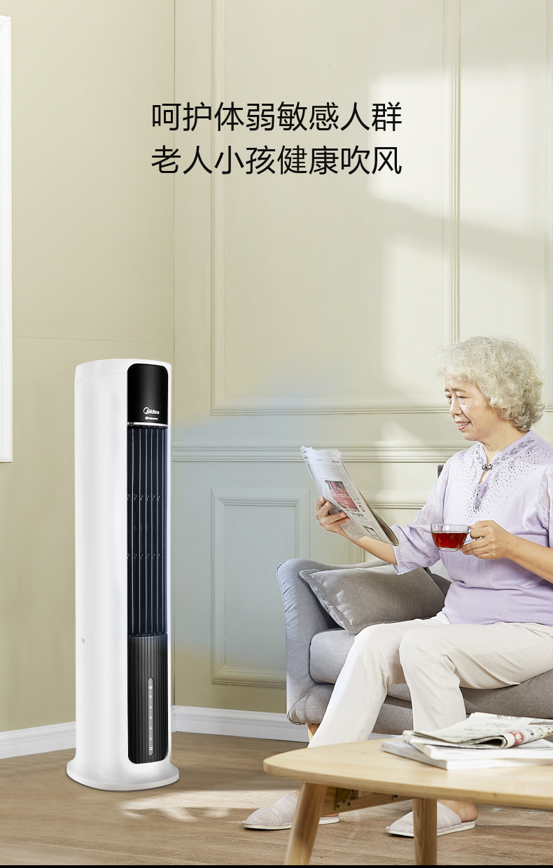 美的(Midea)空调扇冷风扇家用蒸发式冷风机节能省电移动小空调卧室客厅电扇无叶风扇立式制冷塔扇落地 【送风加湿】ACA12XCR 单位:台