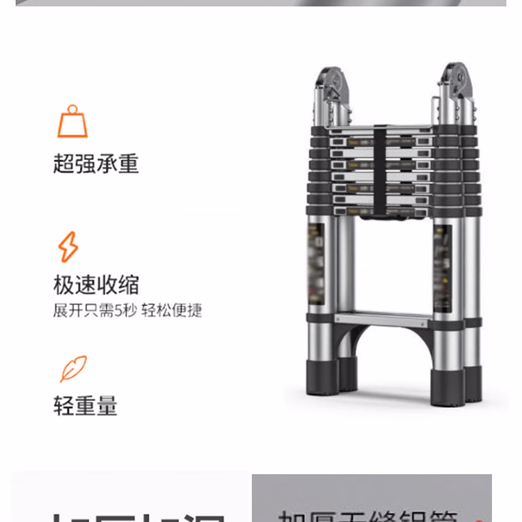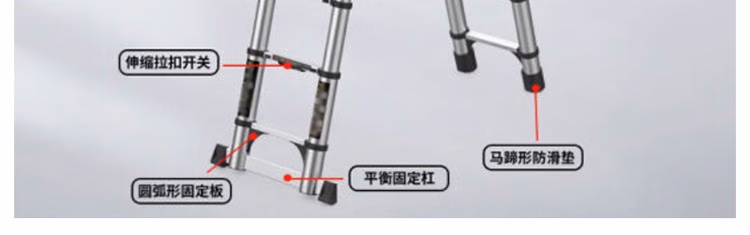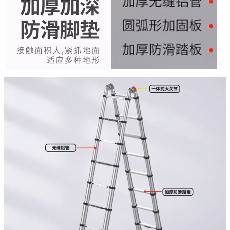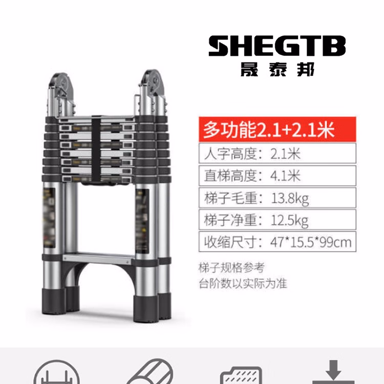 晟泰邦 多功能家用伸缩加厚折叠铝合金伸缩梯人字梯升降工程梯子 【免安装】多功能梯2.1+2.1米 单位:把